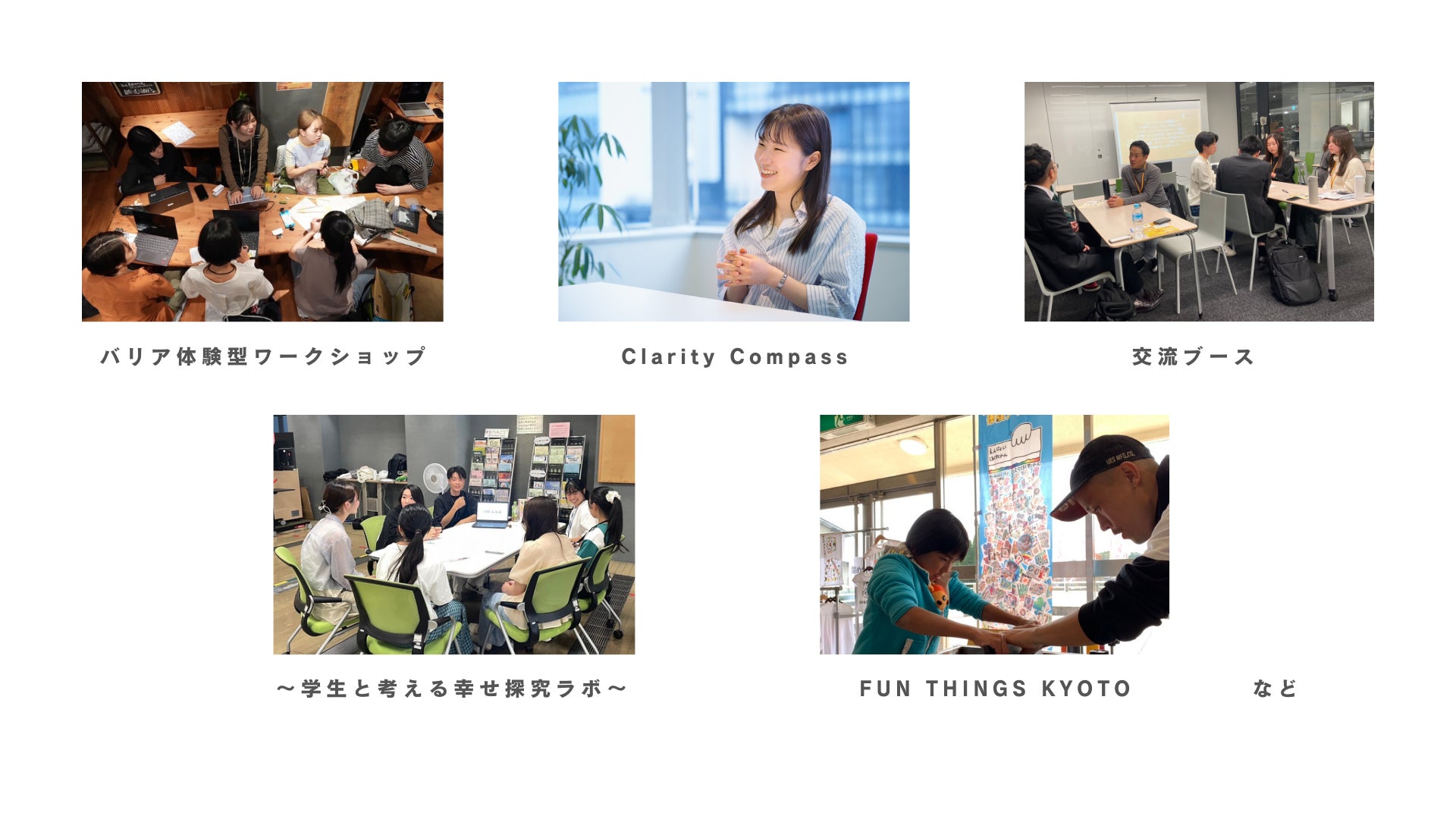 その他、バリア体験型ワークショップや、就労支援にも相性の良いシルクスクリーン体験、自己分析やコーチングが出店。今、仕事の悩みを抱えている方も、自分を見つめ直し、一人ひとりに合った次のキャリアを考えるきっかけを提供します。