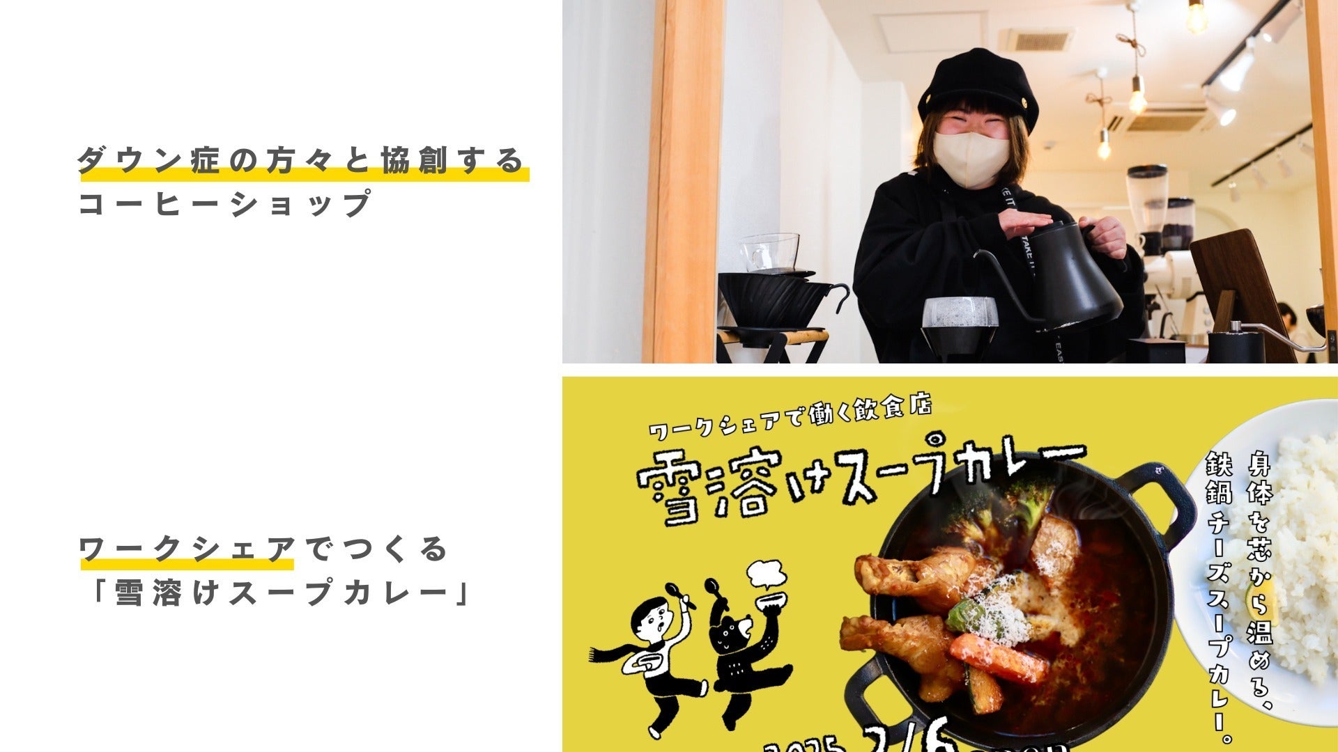 ・「雪溶けスープカレー」「HICARU COFFEE ROASTER」などが出店し、従来とは違う運営スタイルや職場環境を紹介。ソーシャルファームの具体的なイメージをつかめます。