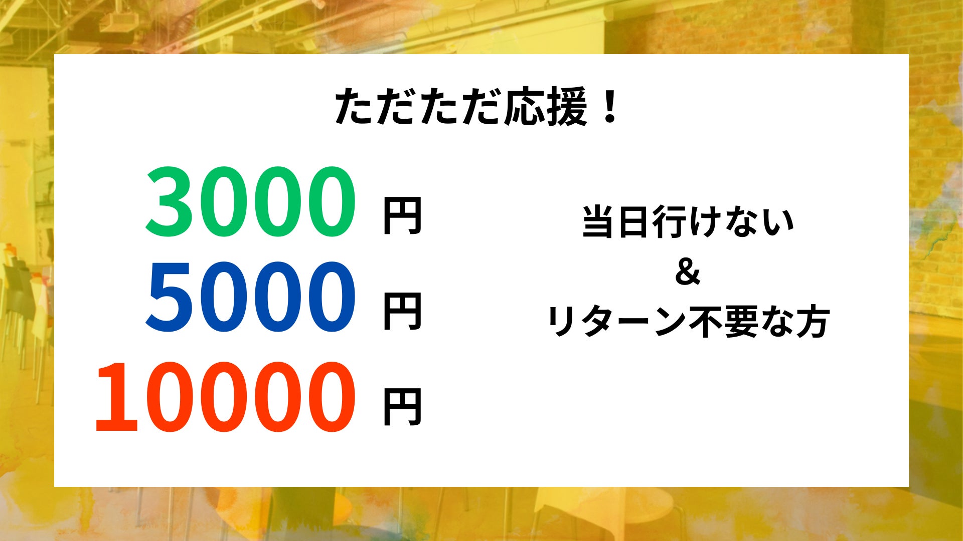 ありがたいことに「当日の日程が合わないけど、応援したい!」というお声をいただいたため、リターン不要のプランを新たに追加しました。