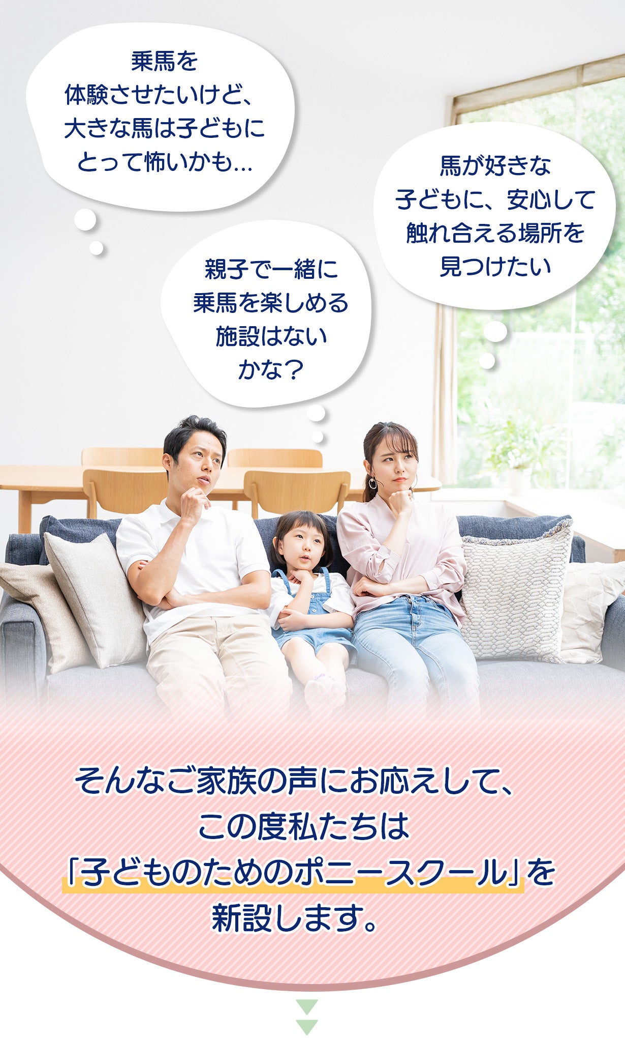 施設をオープンしてから、多くのファミリー層のお客様にご来場いただく中で、「子ども向けの乗馬体験」へのニーズが非常に高いことが分かりました。