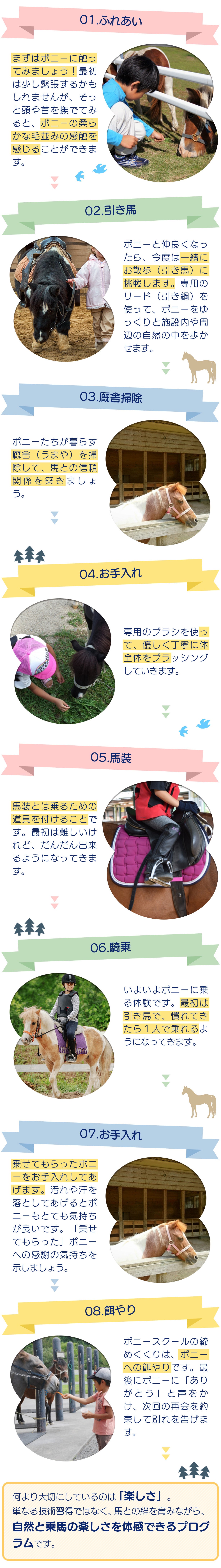 ポニースクールでは、全5回(1回1時間)の基本コースを設定。