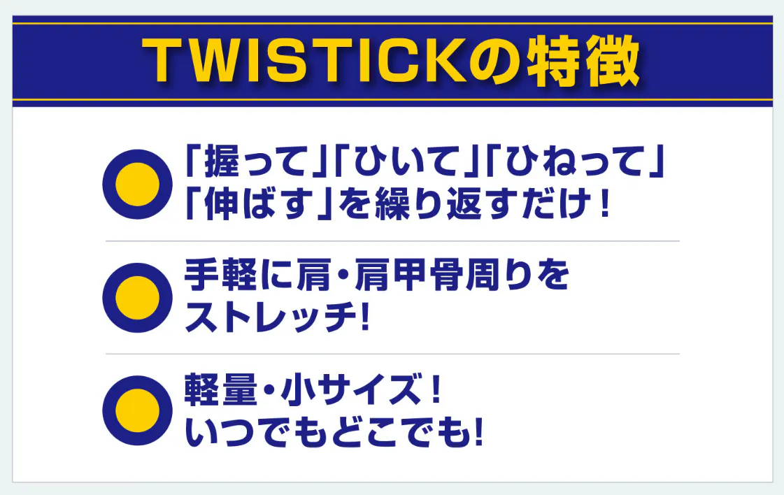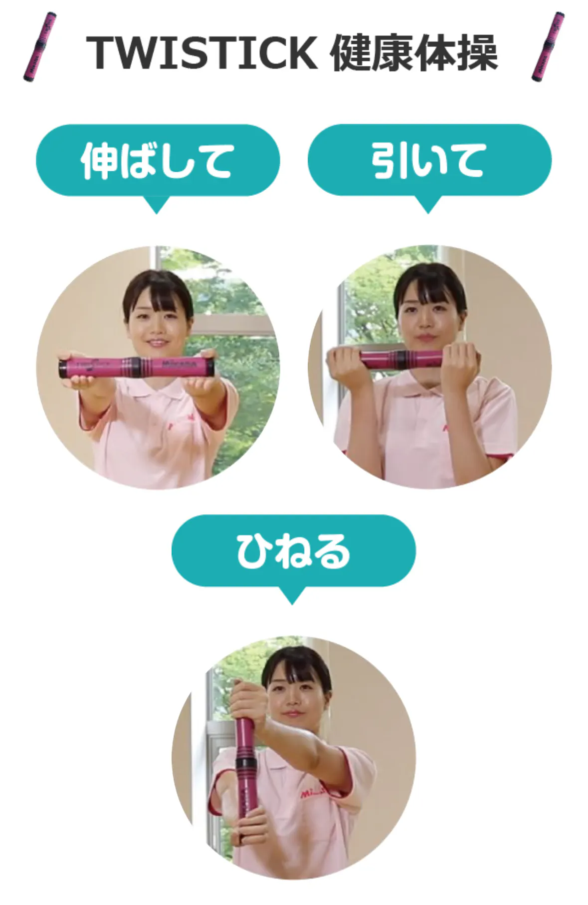 『にぎる』『ひねる』『伸ばす』という動作を通じて、肩こりやデスクワークによる疲れを効果的に和らげます。また、高齢者でも安全かつ簡単にできるように設計されており、介護福祉の分野で使用する例もあります。