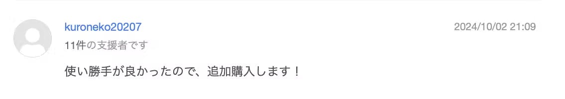 たくさんの方々にご満足いただき、追加での購入をいただいています。