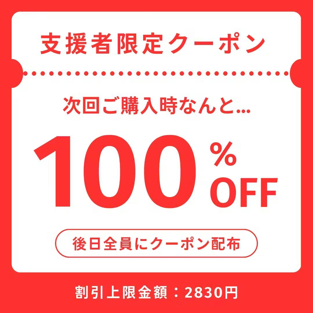 ①【支援者限定で100%オフクーポンを配布!】