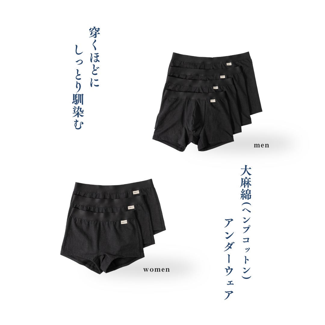 メンズと同様、洗練されたデザイン。ヘンプコットンで肌に優しく清潔にリンパの流れを妨げにくいボクサーショーツ。