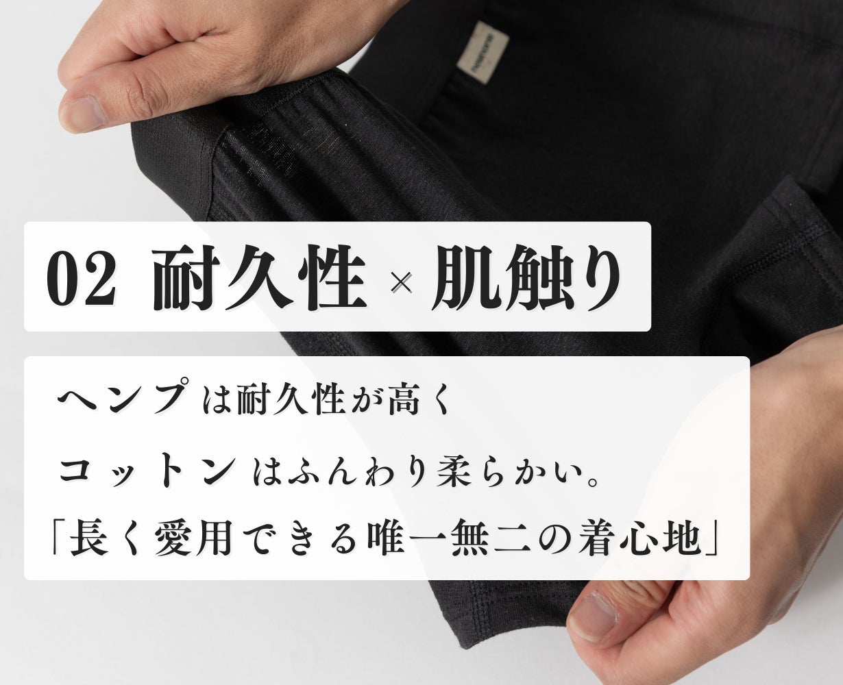 - ▶︎多様な機能性を持つ大麻(ヘンプ)繊維を使用した、大麻綿アンダーウェア。