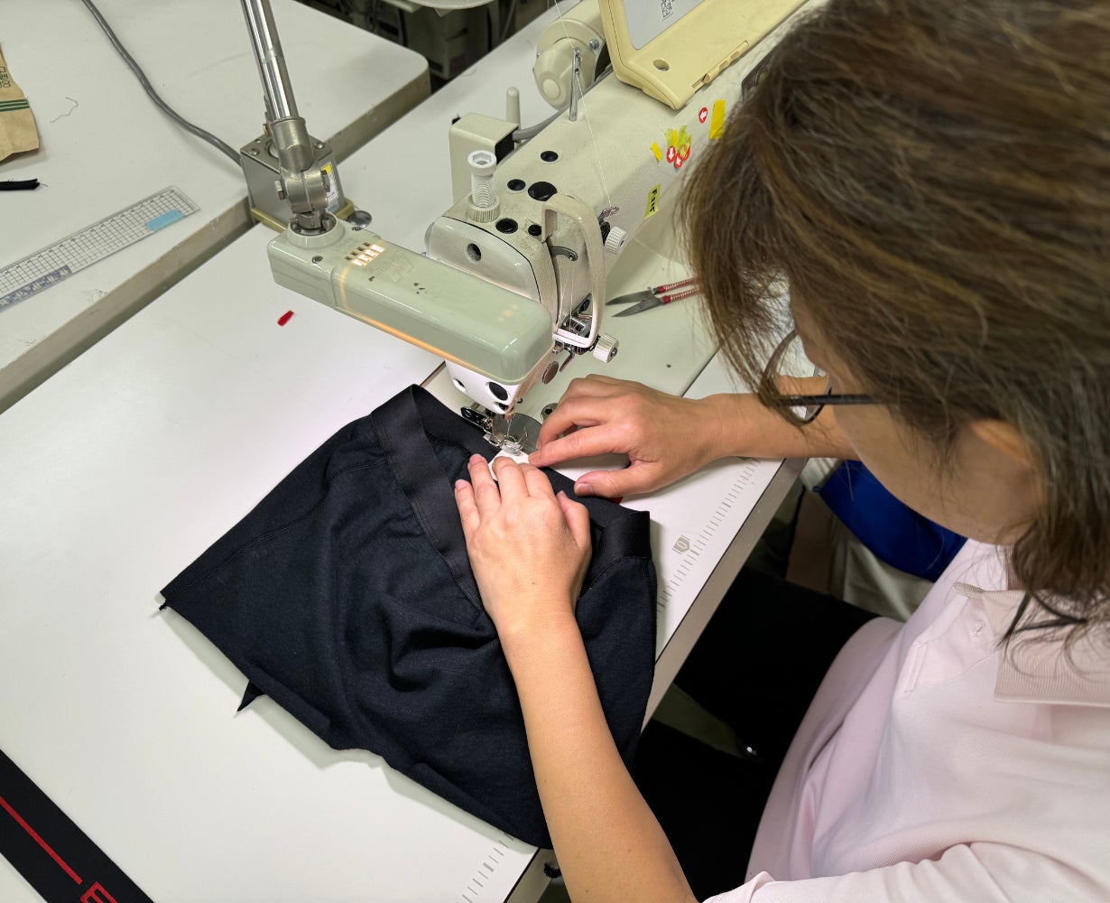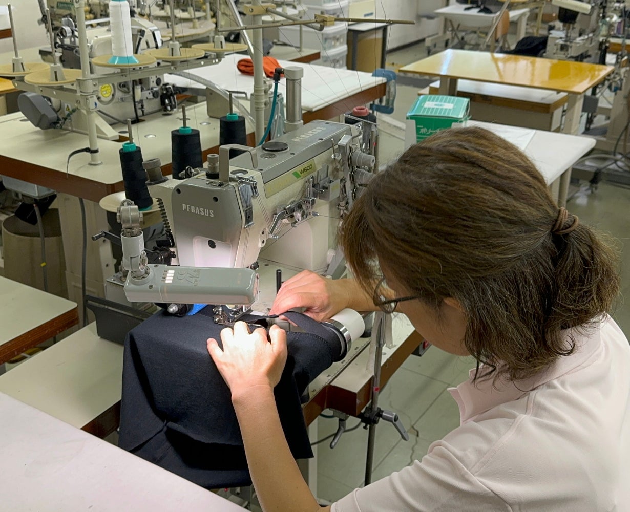 日本国内で長年の経験を持つ縫製工場であり、オペレーターと言われる職人さんが一枚一枚丁寧に縫製してくださいます。