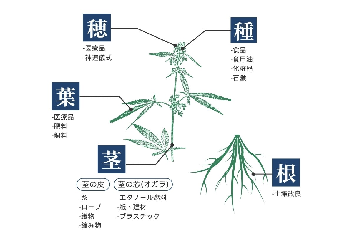 多様な産業用途に応用可能で「茎(繊維部分、木質部分)・種・葉・花穂・根」といった部位を用いて様々な産業用の用途に活用でき、その数は、3万種をも上回るといわれています。