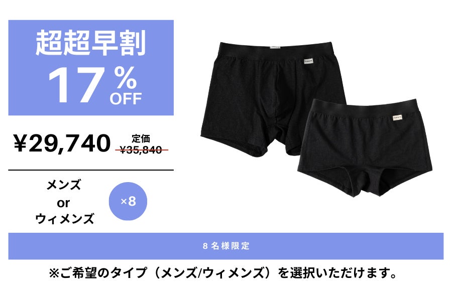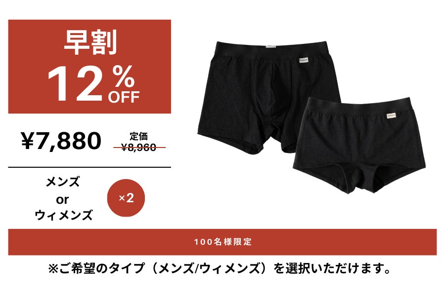 [boxer brief for men]と[boxer shorts for women]をご用意いたしました。