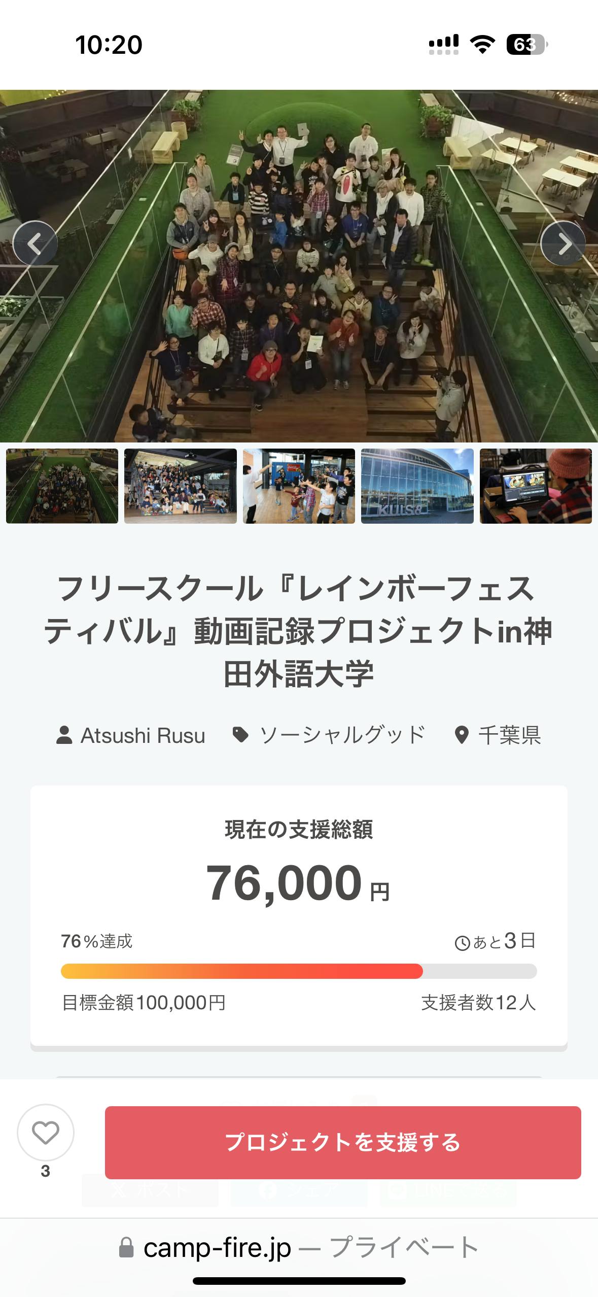 イベント当日が最終日なので最後まで支援を募る形ですが、このイベントを知っていただくためにもこちらのクラウドファンディングをシェア頂けますと嬉しいです!
