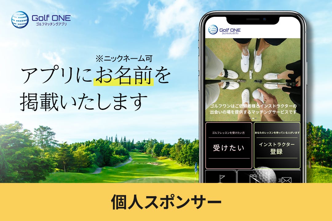 ゴルフ場情報が一つに集約されたマッチングアプリ「GOLF ONE」の個人スポンサーになれる権利です。 「GOLF ONE」に支援者としてお名前を掲載させていただきます。