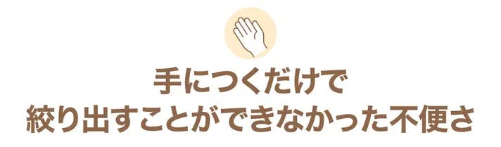 スクイーザー1の時からさらに改良を重ね、握りやすく、力を入れずに絞り出せる形に進化しました。また、2in1タイプを望む声もありましたが、より手軽に使えるように一体型へと改良。