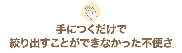手首や手の自然な動きに基づいた人間工学的デザインにより、無理なく簡単に最後まで絞り出せます!