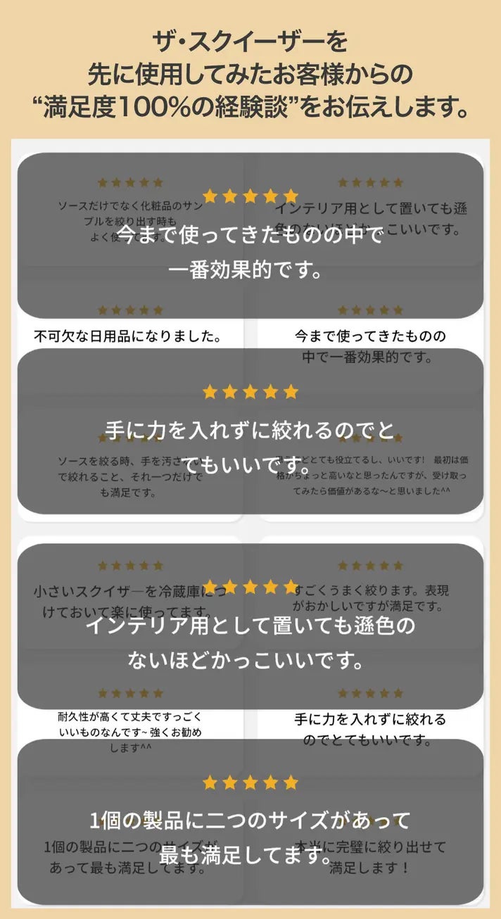 ザ・スクイーザーなら、誰でも簡単にきれいに絞り出せます。