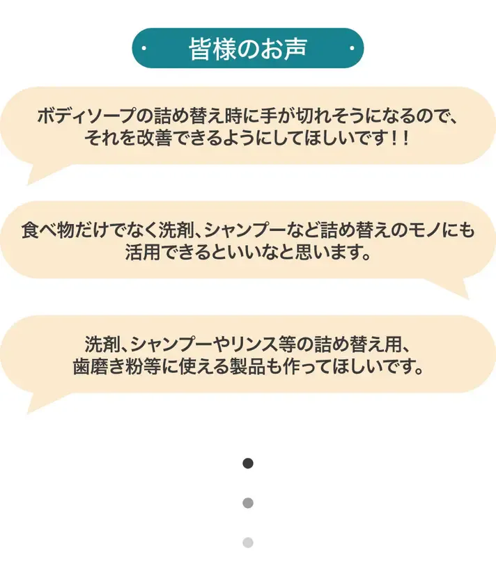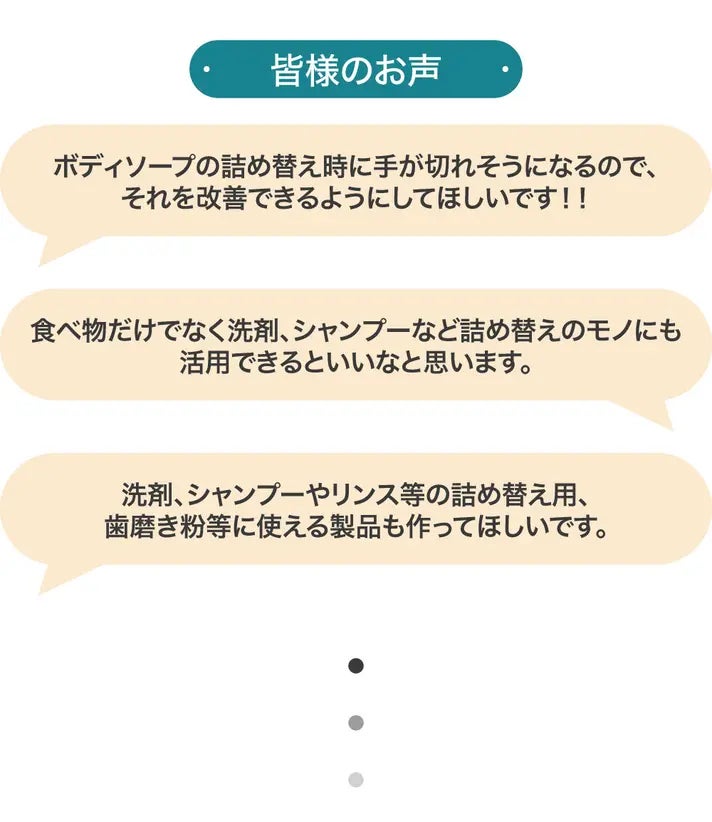 その結果、小さなパウチから大きなパウチまで、サイズを問わず快適に絞り出せるようになりました!