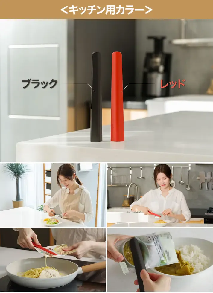 キッチン用は、汚れが目立ちにくいレッド&ブラック。