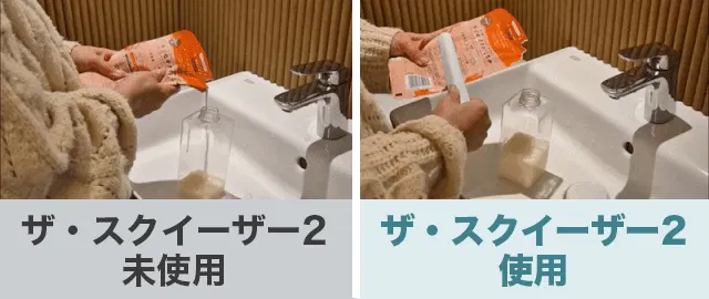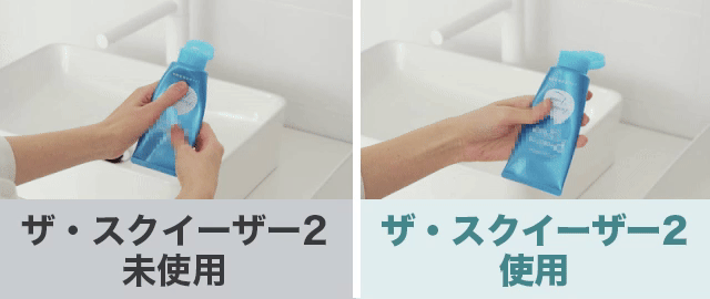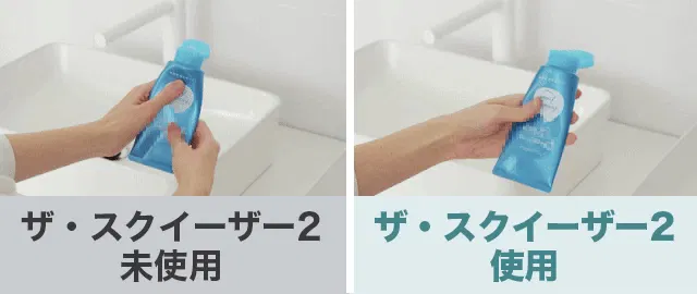手で絞ると中身が残りがちですが、ザ・スクイーザー2なら残さず使い切れます。