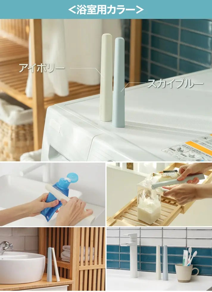 浴室用には、空間にやさしく馴染むスカイブルーとアイボリーを採用しました。