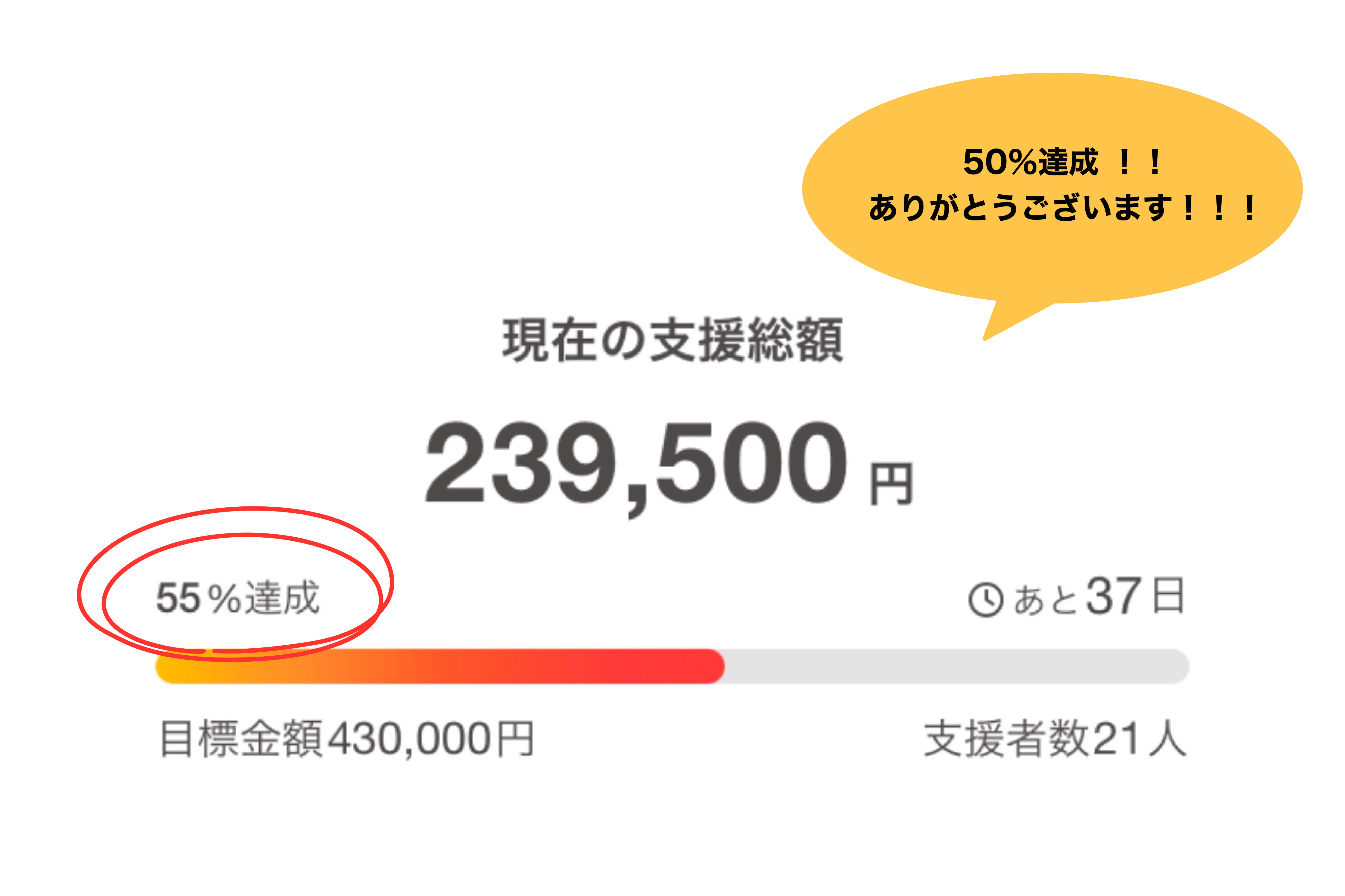 皆さまの温かいご支援のおかげで、クラウドファンディング開始から4日目にして、達成率50% を突破いたしました!