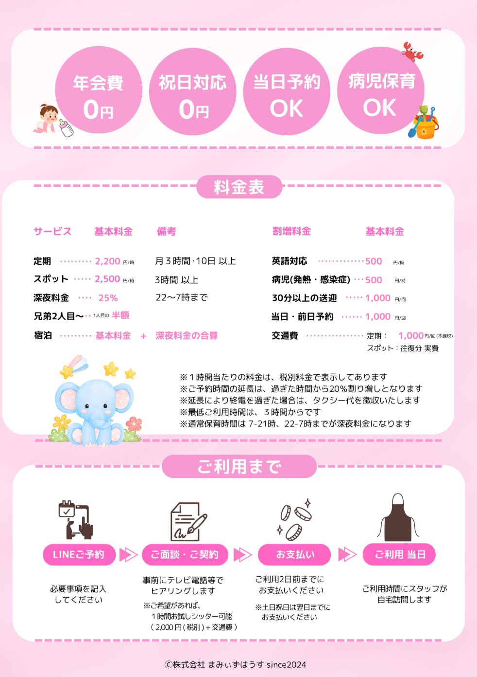 私はベビーシッター会社を経営しています。(株式会社まみぃずはうす 所在地東京都新宿区西新宿3丁目3番13号 水間ビル6階)