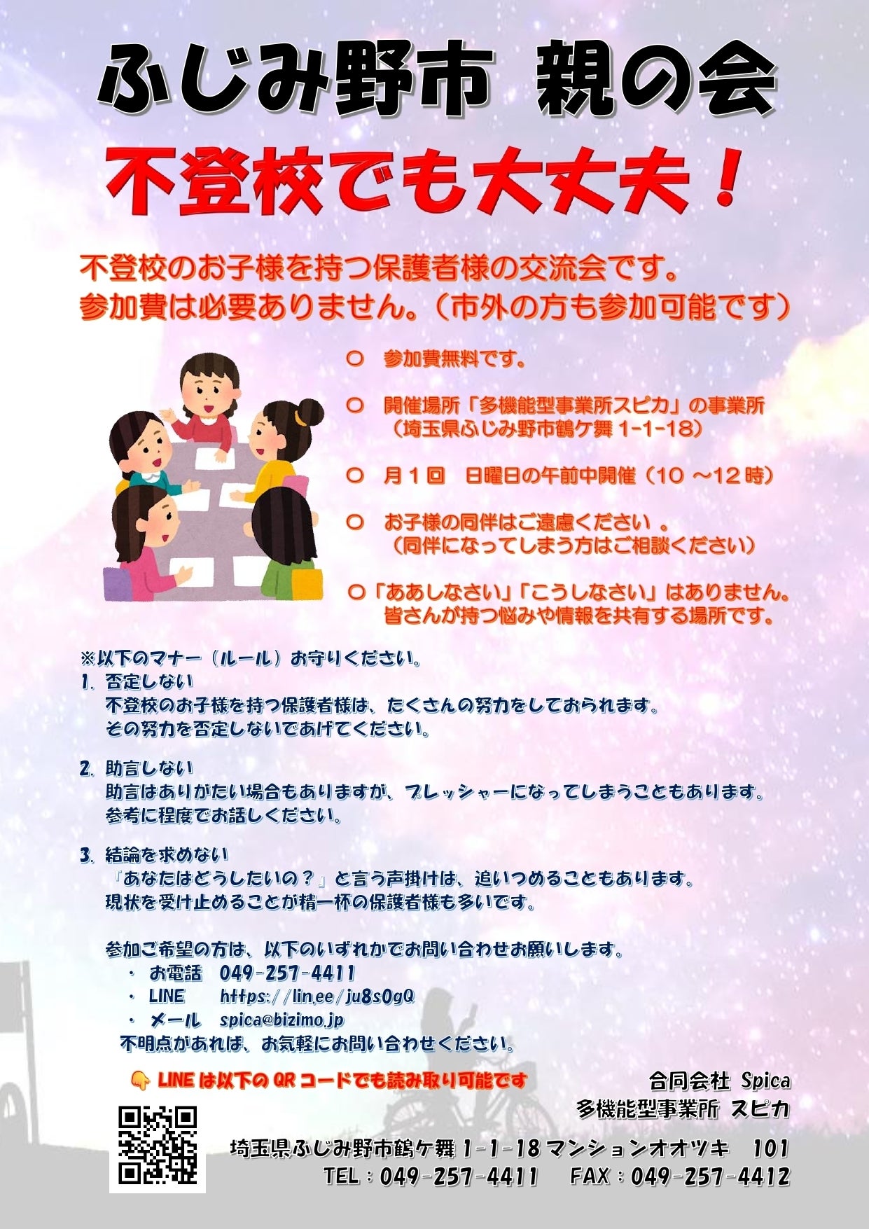 報告が遅くなりましたが、先週の土曜日はスピカで「不登校の親の会」を実施しました。