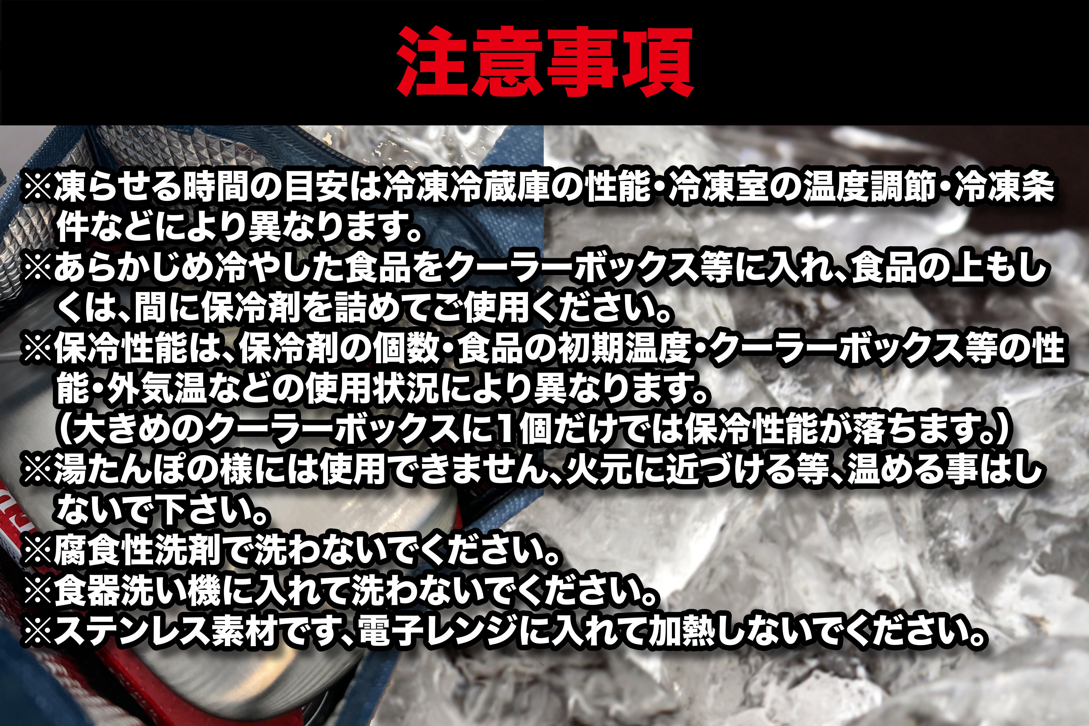1.使用前冷凍庫で凍らせてください。凍結点は-5°以下。