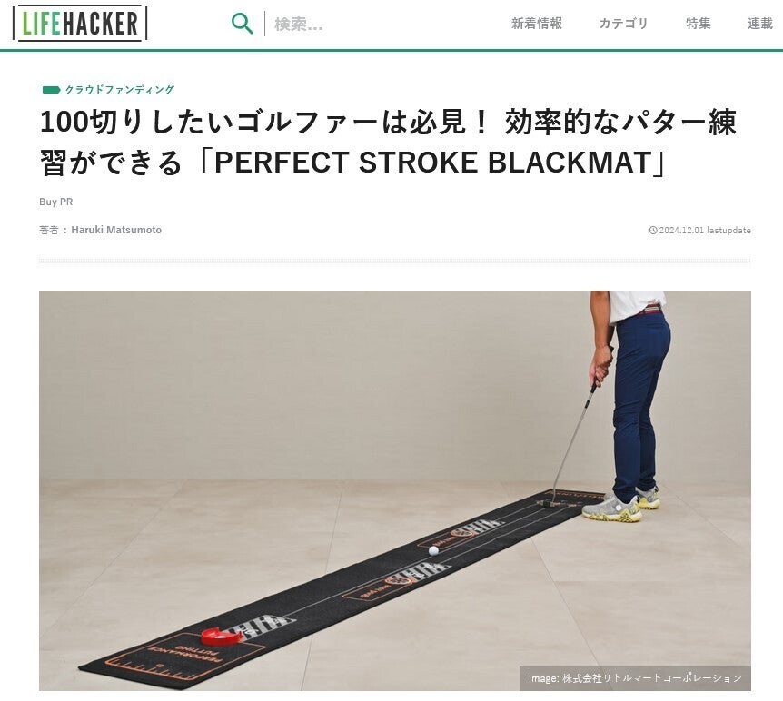 使える!役立つ!ライフスタイルメディア「LIFE HACKER(ライフハッカー)」様に「PERFECT STROKE BLACKMAT & T-Putting」をご紹介いただきました!>>>100切りしたいゴルファーは必見! 効率的なパター練習ができる「PERFECT STROKE BLACKMAT」https://www.lifehacker.jp/article/machi-ya-perfect-stroke-blackmat-start-808437/とても分かりやすく特徴を捉えていただきご紹介いただきました。「LIFE HACKER(ライフハッカー)」様、ありがとうございました!