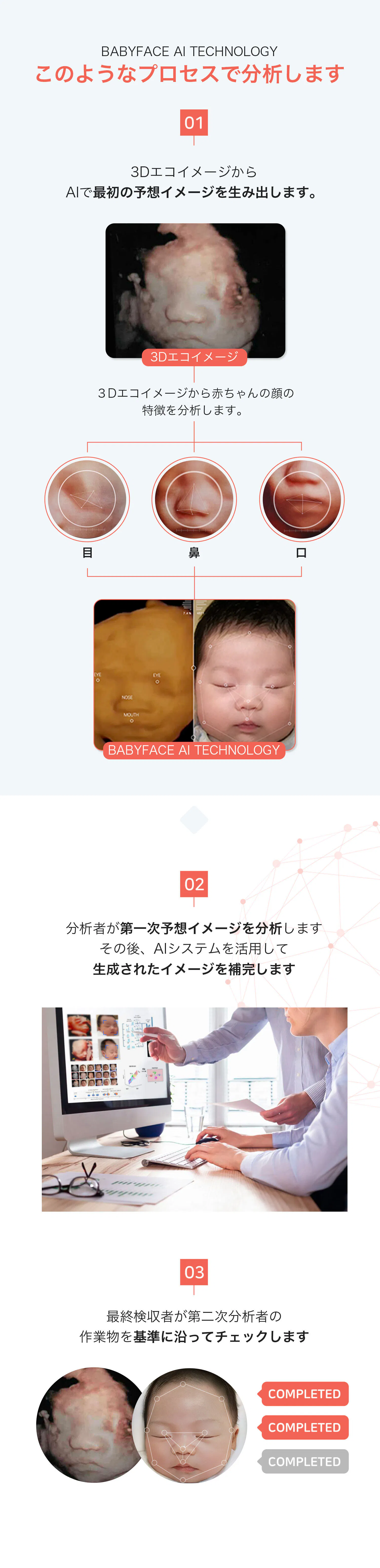答1. 3D及び4Dの超音波画像、かつ鼻と口が確認できれば解析可能です。