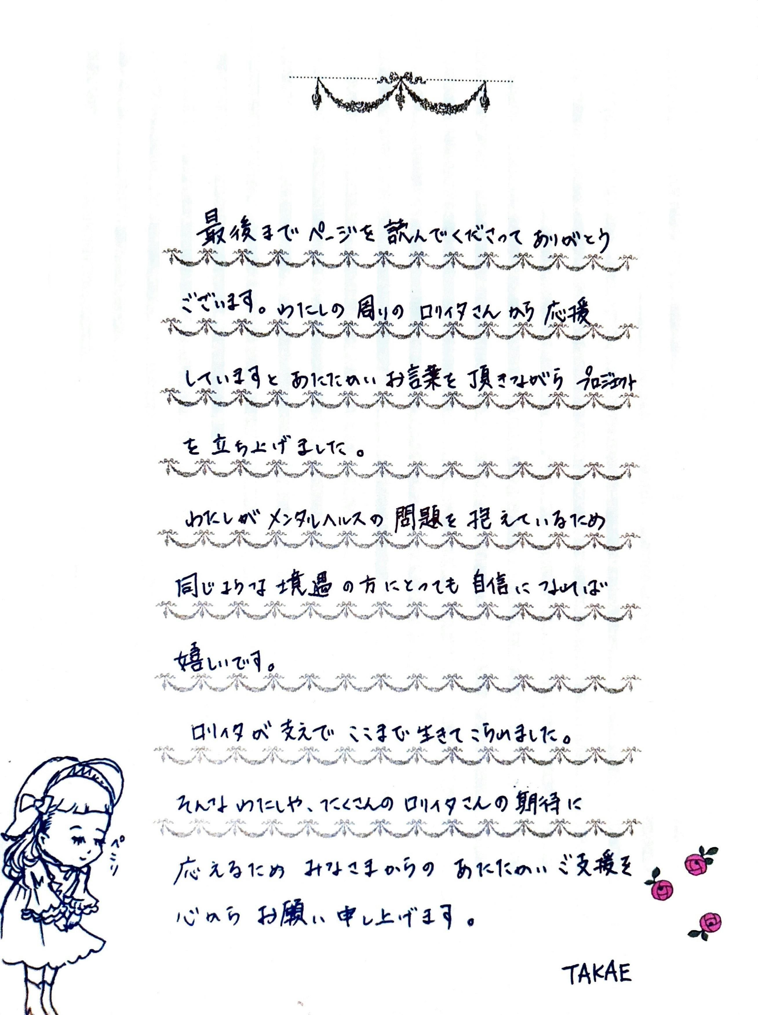 わたしは幼い頃より発達障害をはじめ様々な精神疾患と闘いながら生きてきました。人間関係、自分の在り方、進路…。たくさん悩んで辛く苦しいとき、わたしを支えてくれたのはロリィタファッションでした。