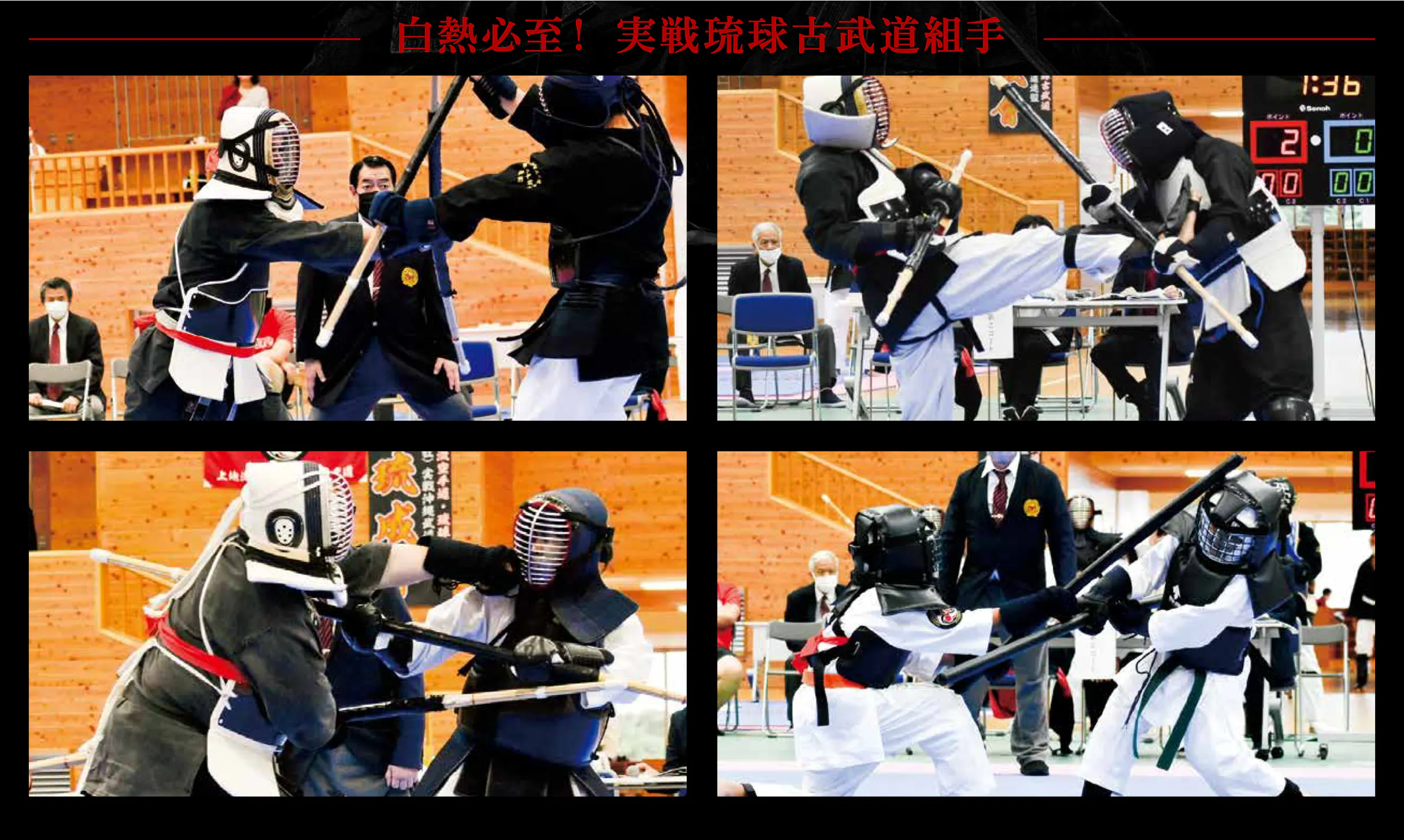 また、本大会の特徴としては、「棒」での攻撃に加え、「正拳」と「蹴り」による攻撃を認めるルールを採用した「実戦硬式組手」のトーナメントを行なっています。また、特に今年度からは、棒、短棒、ヌンチャク、トンファー、三節棍などの琉球古武道における代表的な武器が自由選択で使用できる「実戦軟式組手」(突き蹴りの攻撃は無し)を一般の部に導入いたします。競技に出場することは勿論のこと、観覧しても楽しい競技だと考えております。空手家や琉球古武道家の他にも、剣道や長刀、銃剣道や短剣道といった他の武器術を志す方々・愛好家にも門戸を広げ、魅力的なコンテンツにして行きたいと考えています。