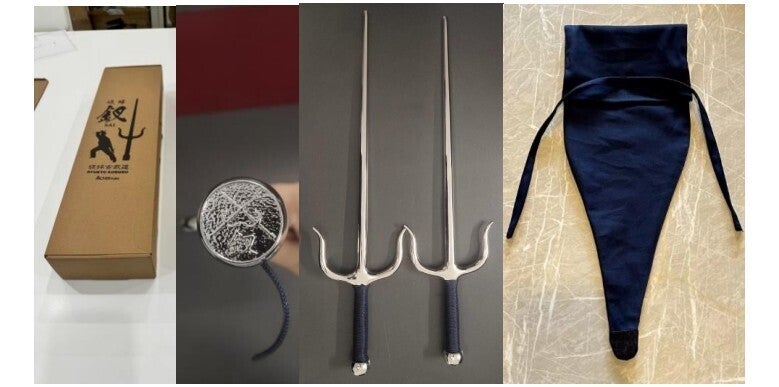 ●琉球古武道武具釵(サイ)。「正当な理由なく刃物を携帯する行為は、銃砲刀剣類所持等取締法第22条及び軽犯罪法第1条第2号により禁止されています。また、18歳未満の方は本プロジェクトを支援することはできません。
