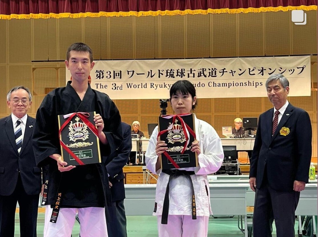 ワールド琉球古武道チャンピオンシップ実行委員会です。昨年の第3回大会では皆様の多大なるご支援を賜り大会を無事開催することができました。お陰様を持ちまして海外選手は、オンラインで、スペイン、フランス、オーストラリア、アメリカ、ウルグアイ、グアテマラ、メキシコ、ウクライナ、インドネシアと9カ国計46名の選手が参加し、対面では、オーストラリア、 インドネシア、 コロンビア、カナダ、ラトビア、 イギリスの6カ国から9名の選手が参加してくれています。国内選手の115名と合わせますと総勢170名の選手に参加していただきました。改めて皆様に御礼申し上げます。