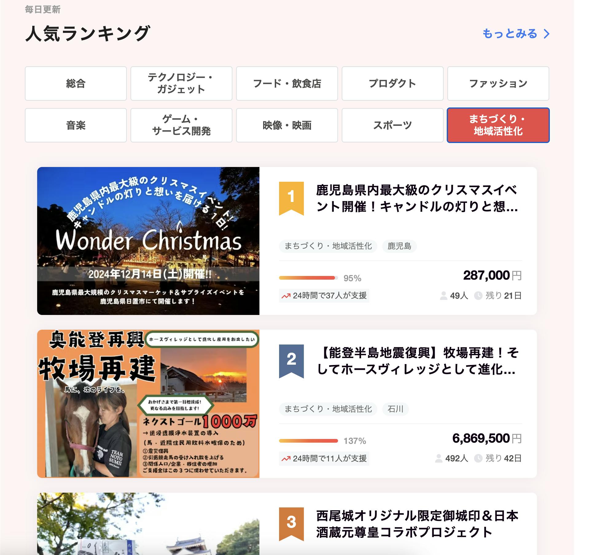 昨日10時にクラウドファンディングをスタートしたばかりですが、皆さまのお力添えのおかげで早くも【まちづくり・地域活性化】カテゴリーで1位に輝くことができ、目標達成も目前です…また涙腺が…