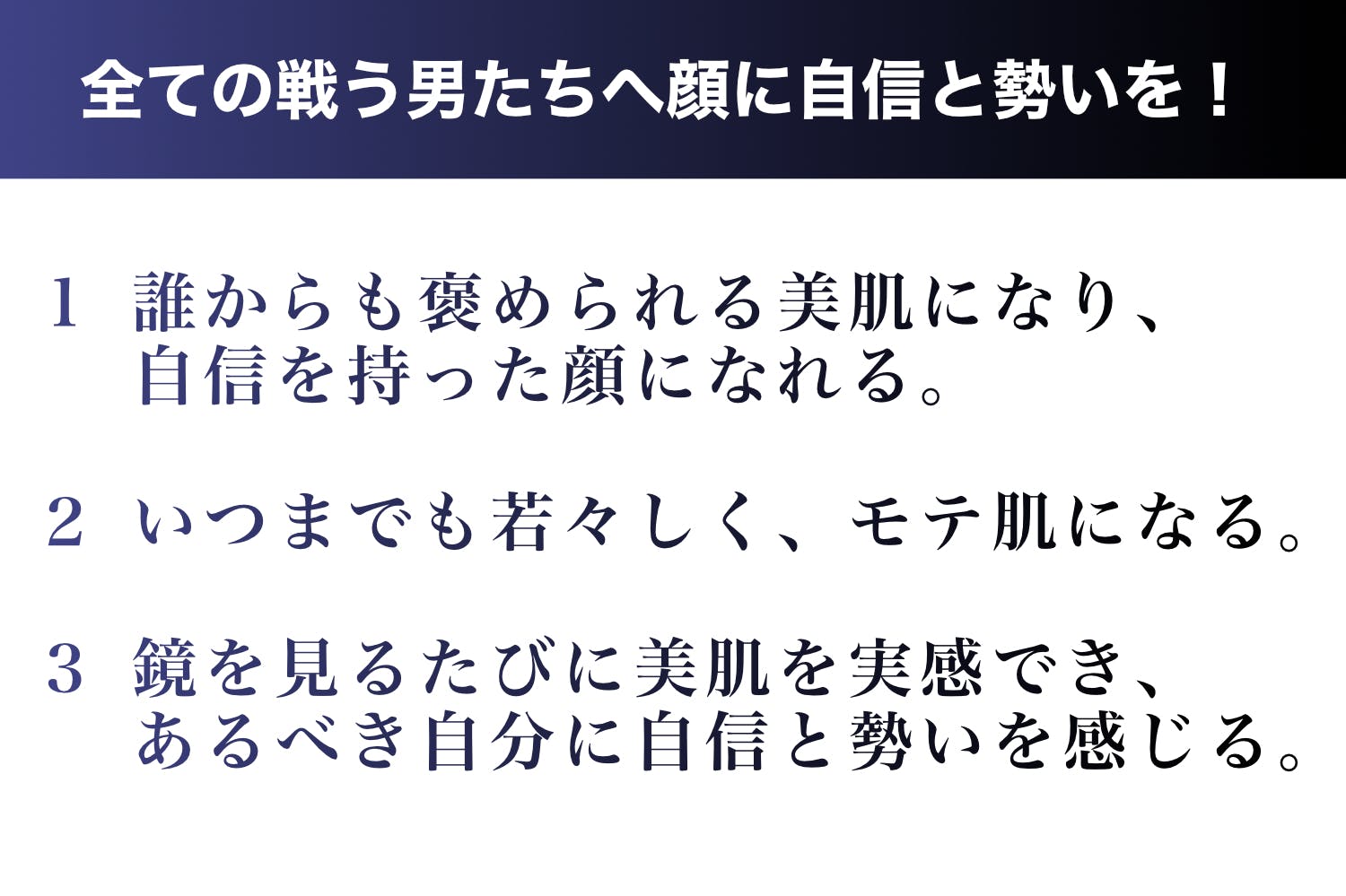 メンズエイジングケアだからと言って、妥協して良いわけではない。男の肌こそ、圧倒的な力でケアが必要なのだ!