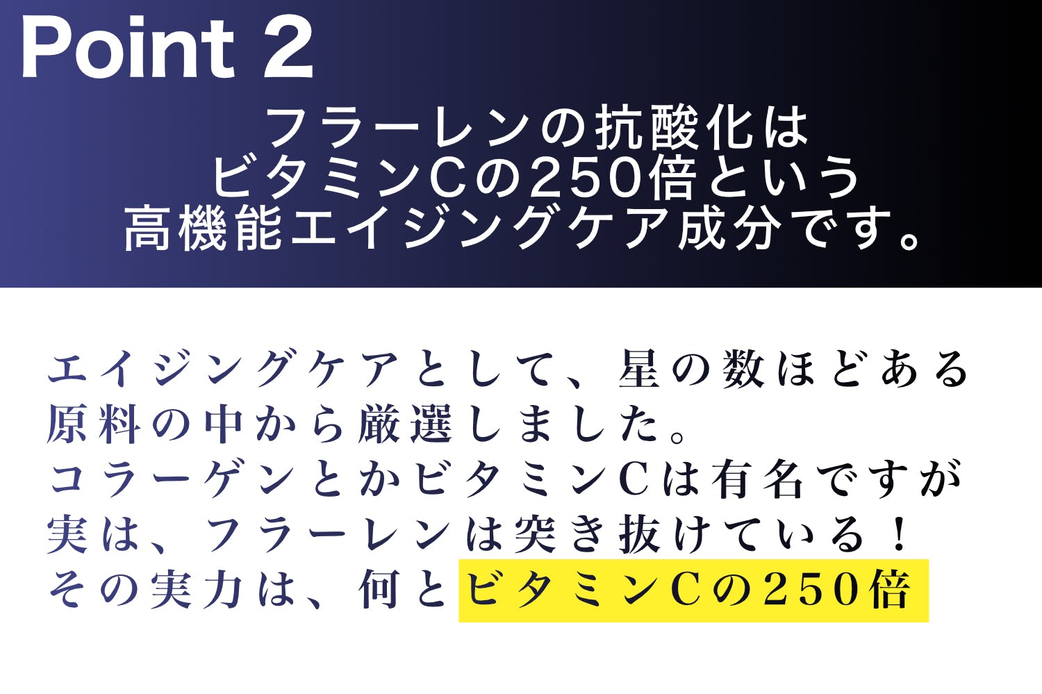 フラーレンは濃度が高いほど効果が強力です。業界初の高濃度10%を実現。