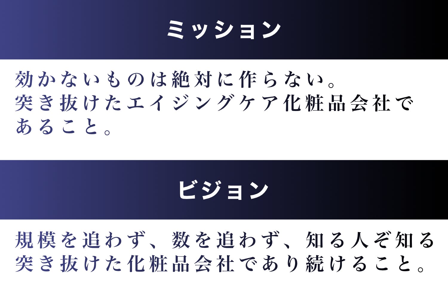 化粧品業界では、有名人やインスタグラマーなどを使った華やかな広告や巧みな見せ方が主流ですが、その裏で原材料費を削り、ごく微量の成分でも「〇〇配合」と謳う商品が多く存在します。しかし、エイジングケアは「効く」ことが何よりも重要です。私たちは「効かないものは絶対に作らない」というポリシーを掲げ、本当に価値のある製品を作り続けています。