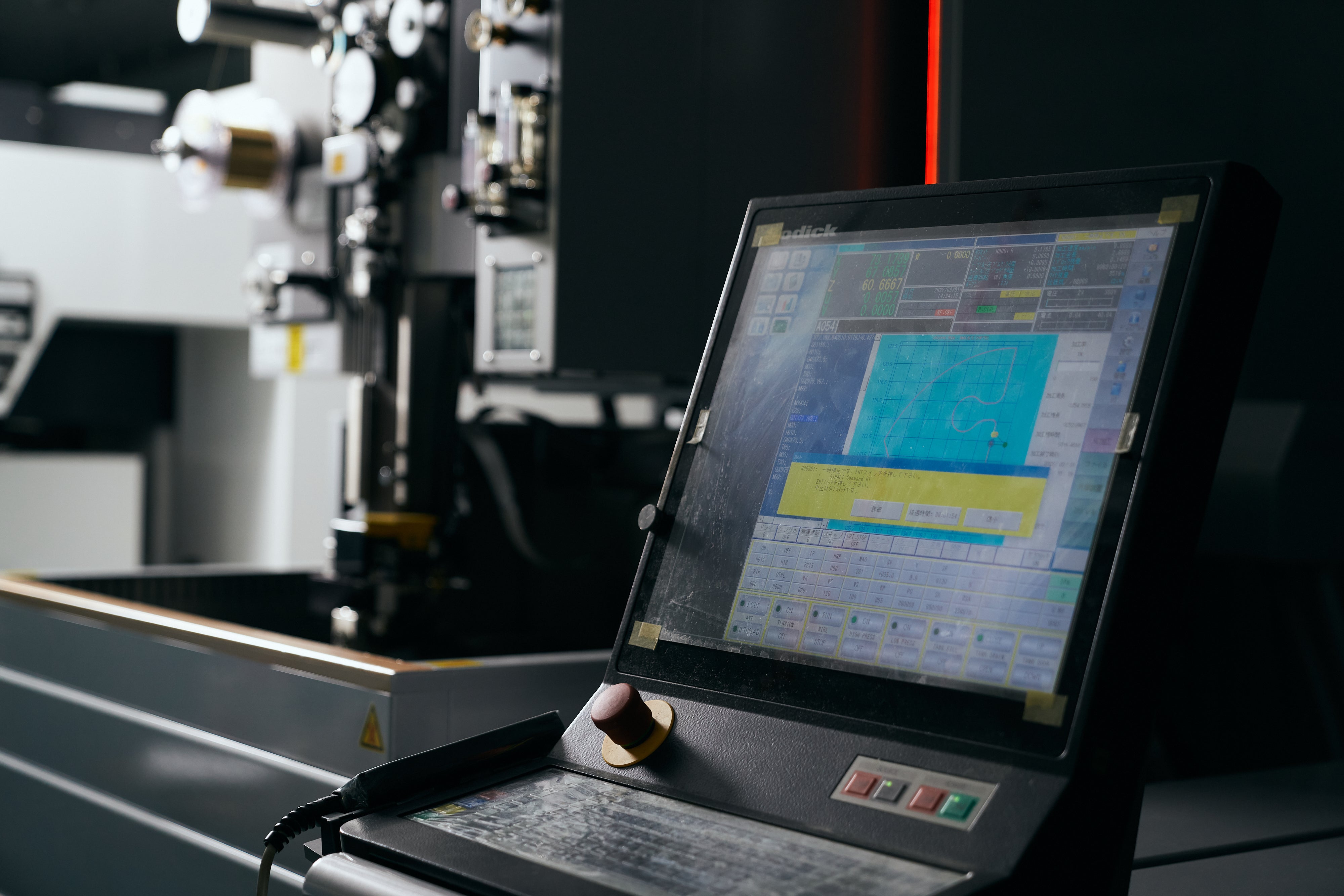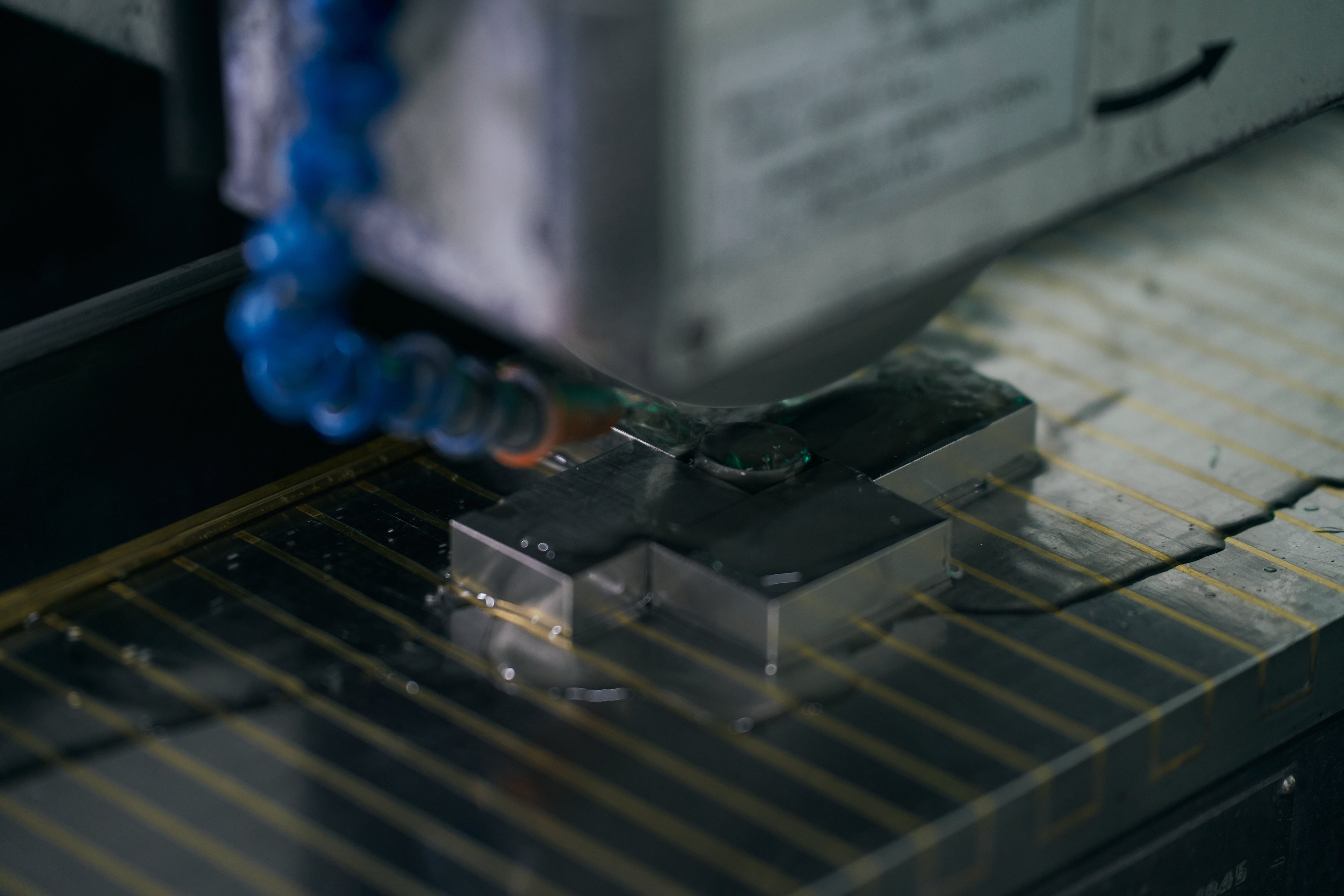 ⑨ワイヤー放電加工機で加工をする。