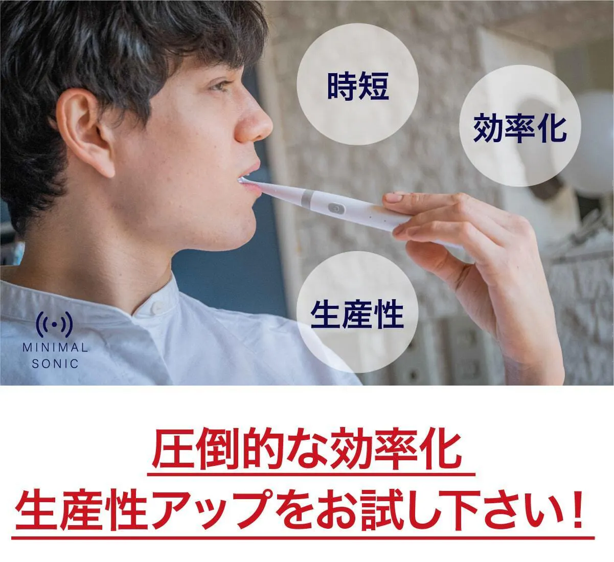 私達は日本の電動歯ブラシ普及率22%をなんとかしたいと考え、ミニマルソニックを誕生させました。口腔内のケアは大変重要なものであるにも関わらず、そのツールの進歩はまだまだです。ミニマルソニックが少しでも日本の電動歯ブラシ普及のきっかけになれば大変嬉しいです。