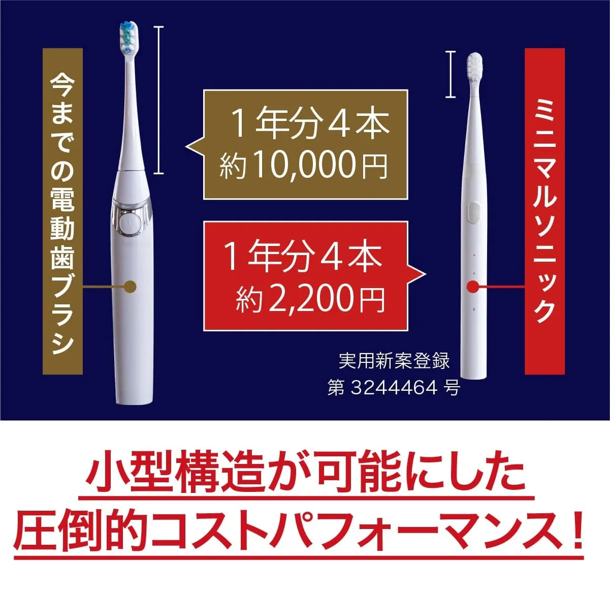 電動歯ブラシの普及率は先進国の42%と比べて、日本は22%と言われています。まだまだ普及が必要だと私達は考えミニマルソニックが普及のきっかけになればと思っています。