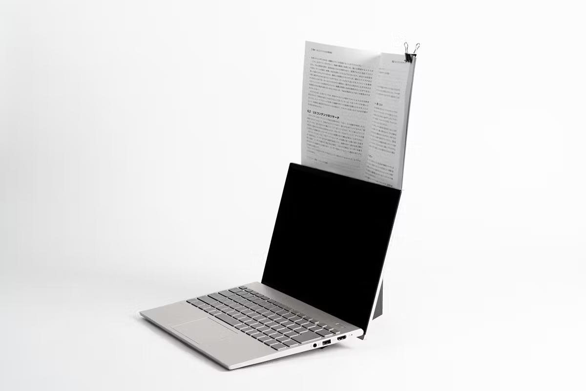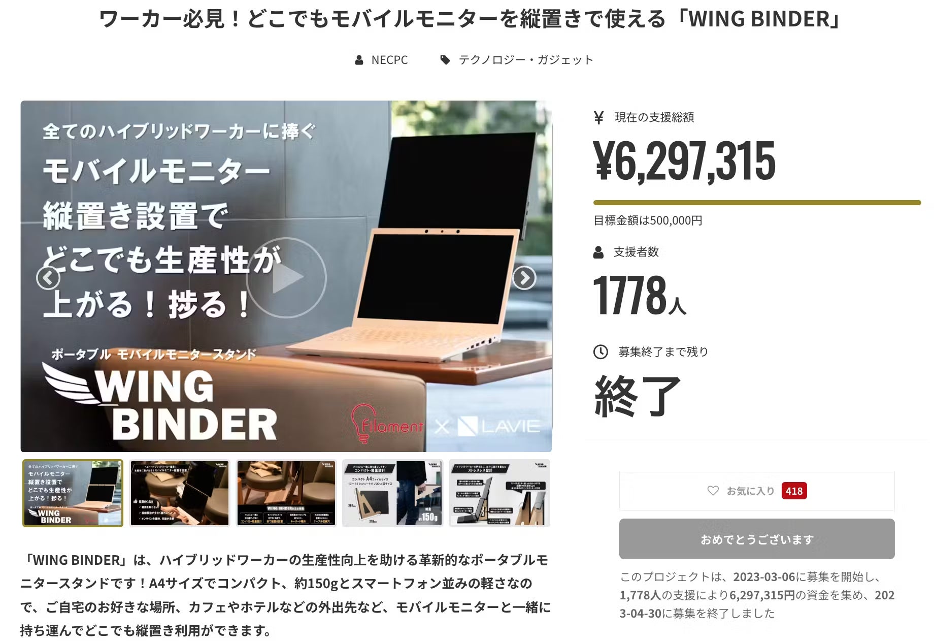 「モバイルモニターをいかなる場所でも縦置きで使えたら」という彼の熱い想いを受け、フィラメント社とNECパーソナルコンピュータの共同開発にて試行錯誤の上完成したのが、「WING BINDER」。