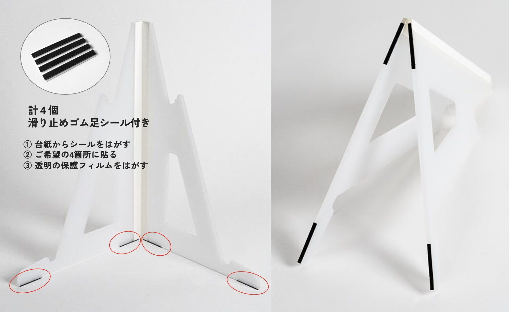 ゴム足シートはお客様ご自身で希望箇所に貼り付けていただく仕様です
