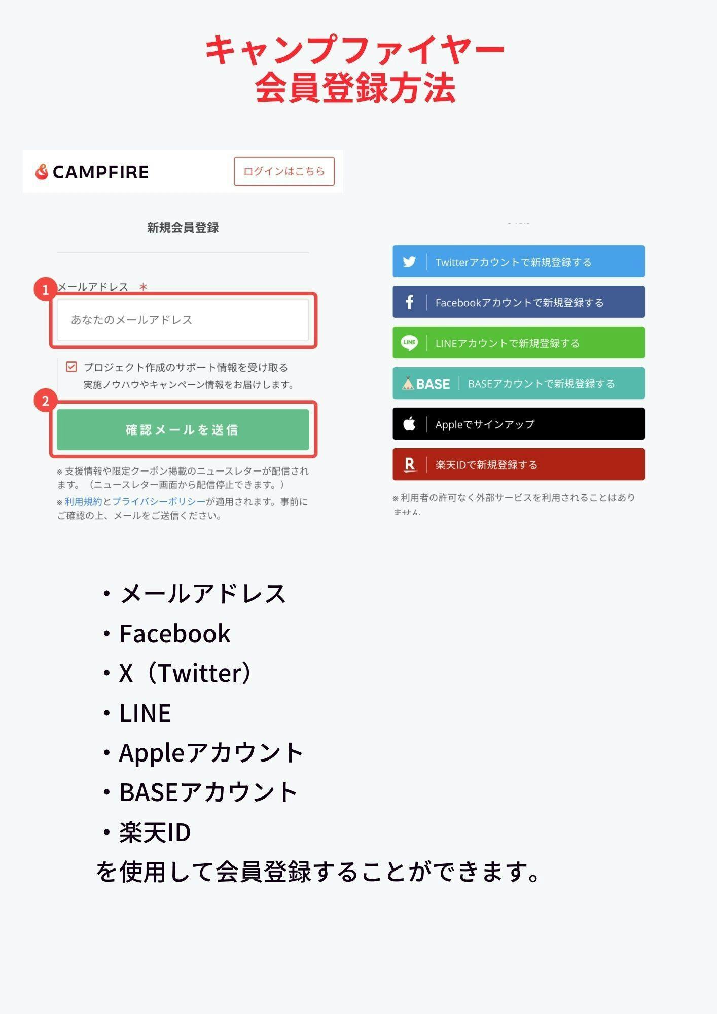 CAMPFIREでは、以下のいずれかの方法で会員登録が可能です。
