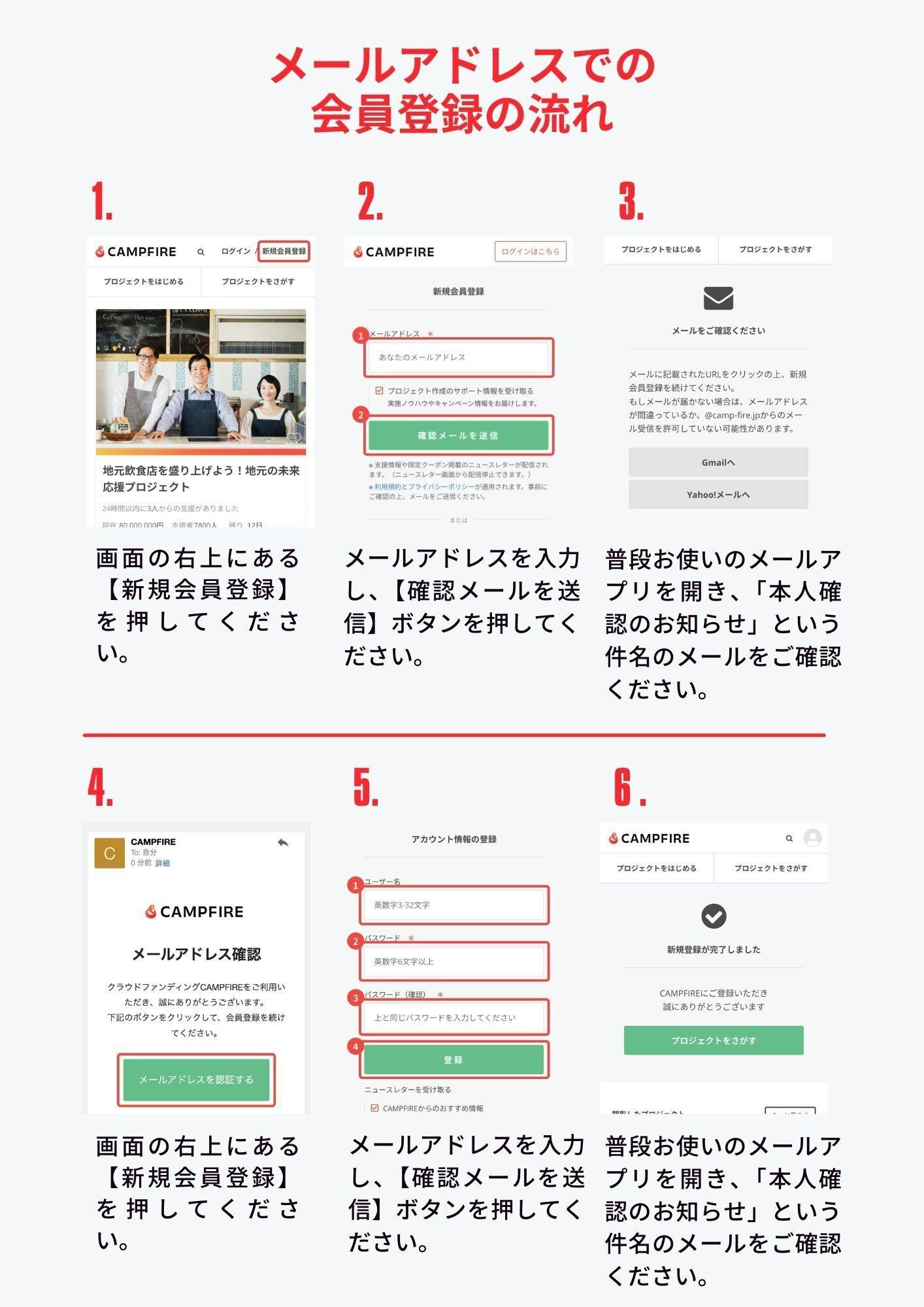 CAMPFIREでの会員登録方法・支援方法をまとめました。