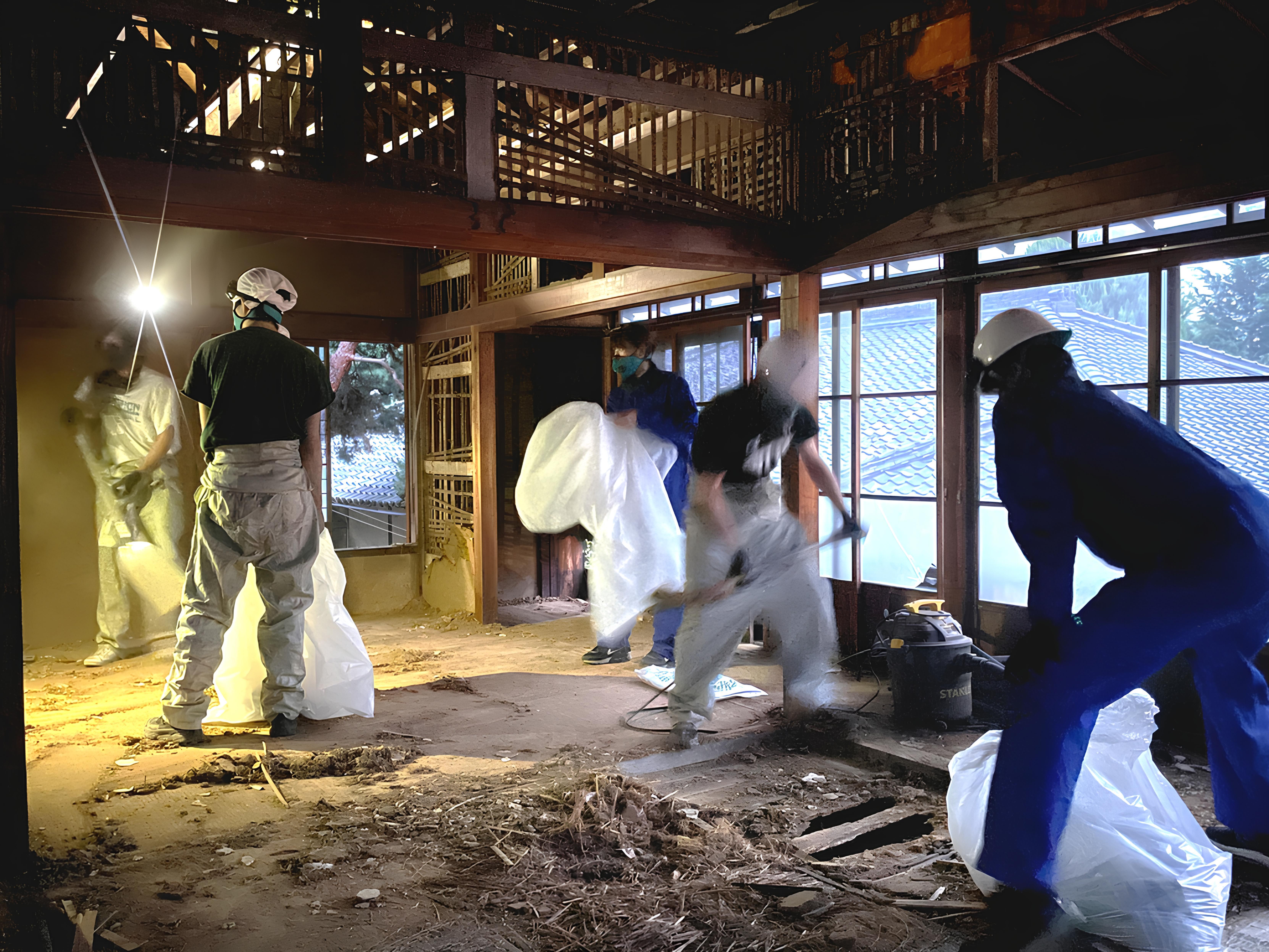 まずは空間を恒久的に使用できる状態にするために、朽ちている外壁や柱の補強を行います。