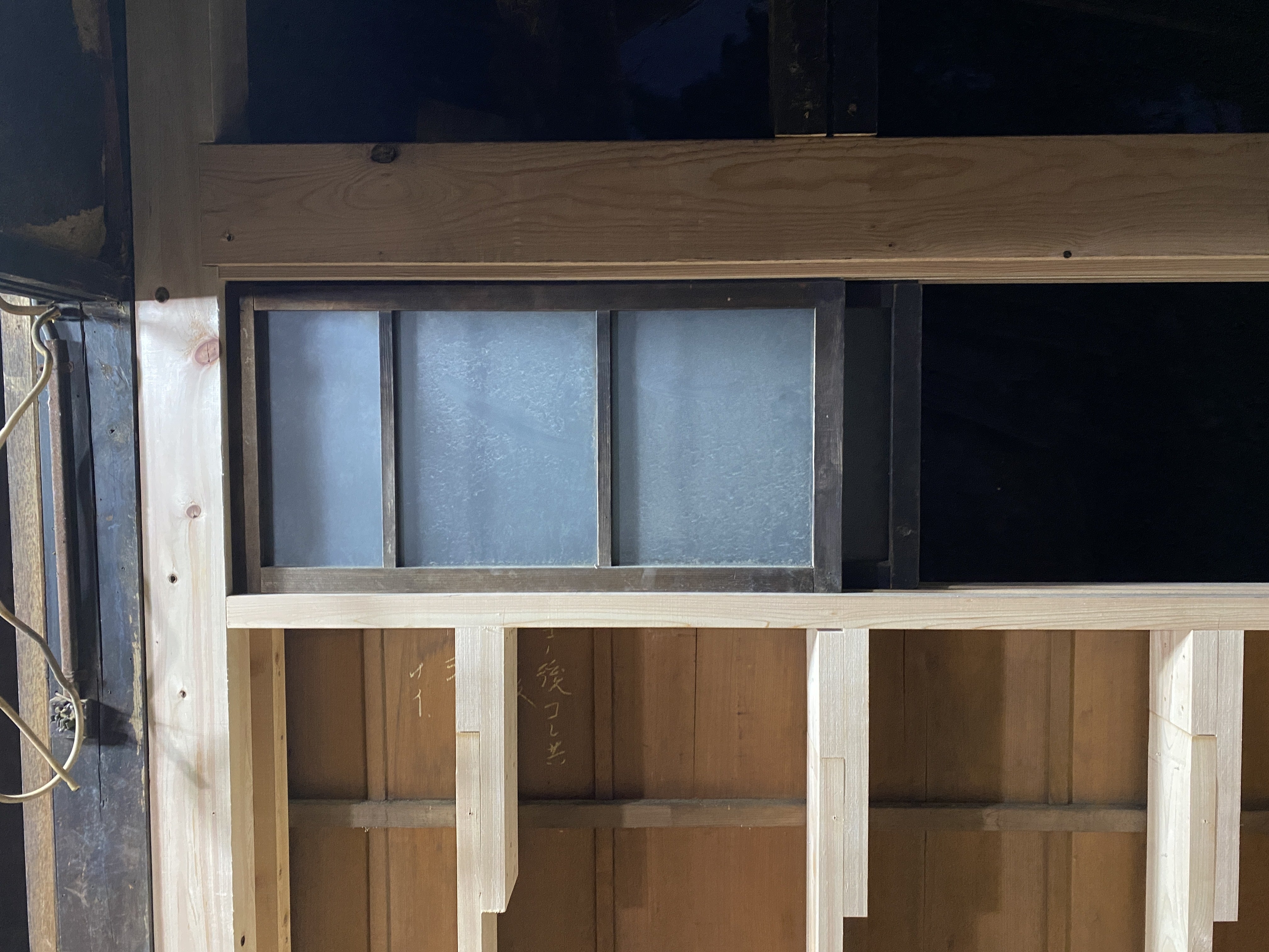 また上部のガラスの部分もよくみると、ちゃんと元々の引き戸の骨組みが使われていて感激でした。