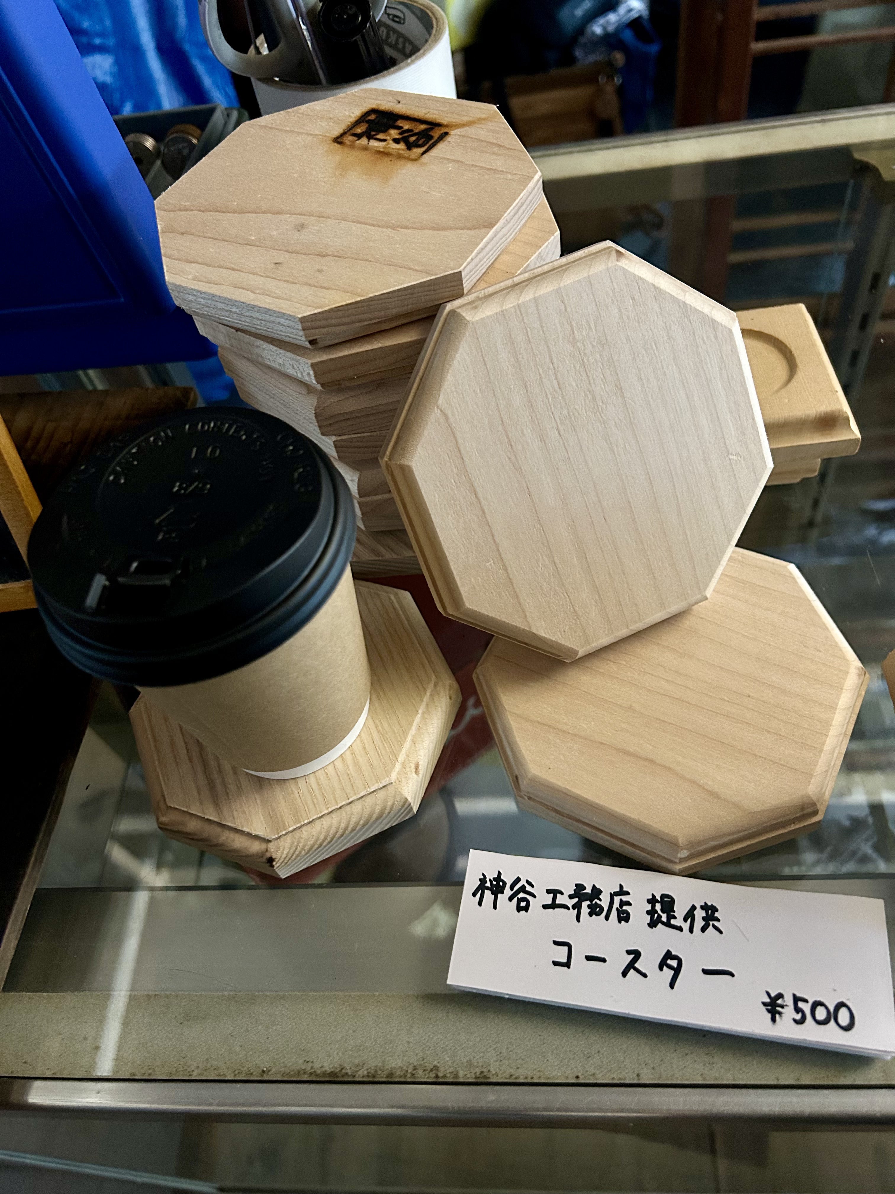 こんばんは。いつも皆様からのメッセージが励みになります。ありがとうございます!***今日はプロジェクトを陰で支えてくださっている、飯田市の工務店さん、神谷さんのご紹介です。神谷さんは、プロジェクトが本格的に始まる前から、初期の初期から関わってくださっていて、とにかく仕事が早いです…!細身な方で、穏やかなお世話になっとります〜の声からは想像できないくらいダイナミックな工事をあっという間にされています。そんな凄まじいスピード感なので、今回の外壁や柱の設置の工事は半月ほどで完了されました…!神谷さんのおかげで今は本当に素敵な空間に生まれ変わっているので、工事の様子については、また別の投稿でご紹介したいなと思っています!ちなみに、イベントの時にもご協力いただいて、神谷さんが作られている木材のコースターを販売していました。なんでも野球のバッドに使われる木材と同じですごーーく丈夫なんだとか…!色がついていないので、自分で好きな色を塗ったりクリアコートを塗ったりしてアレンジするのも楽しそうだなと思っていました。あとは、前の投稿でも書きましたが2階に上ってすぐ右手に設置してあるカウンターの立派な一枚板を神谷さんのおかげで譲っていただきました。ここまで立派な一枚板をいただけることになるとは思わず、感激しました…。この一枚板がどうなっているかはお楽しみにしていてください!神谷さんはじめ、地域の皆さんのおかげで空間が生まれ変わりました。本当にありがとうございます。