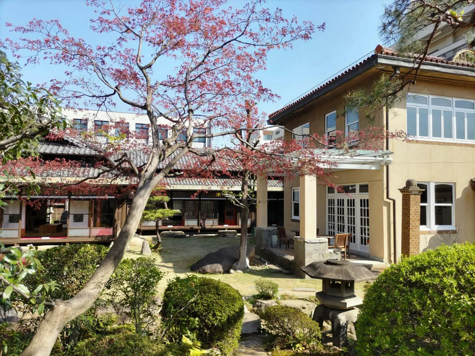輸出陶磁器商の井元為三郎邸が建てた文化のみち橦木館は、玄関の正面に2階建ての洋館、奥に進むと平屋の和館と地下室を備えた東西2棟の蔵に、季節ごとに花が咲き時期によって樹木が色を変える見事な庭園と、その中に建つ茶室で構成されております。