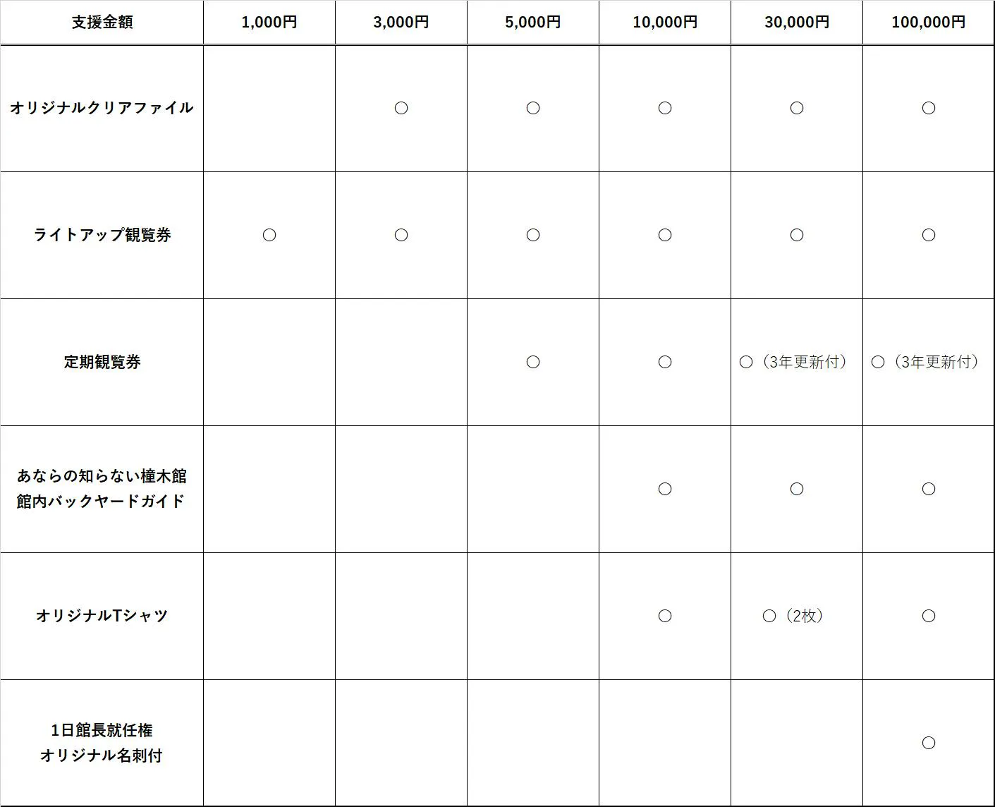 各種リターンとして、橦木館オリジナルグッズやバックヤードツアー、観覧券などをご用意しています。「館内バックヤードガイド」では、一般公開されていないエリアを館長または副館長が案内する特別な体験をお楽しみいただけます。