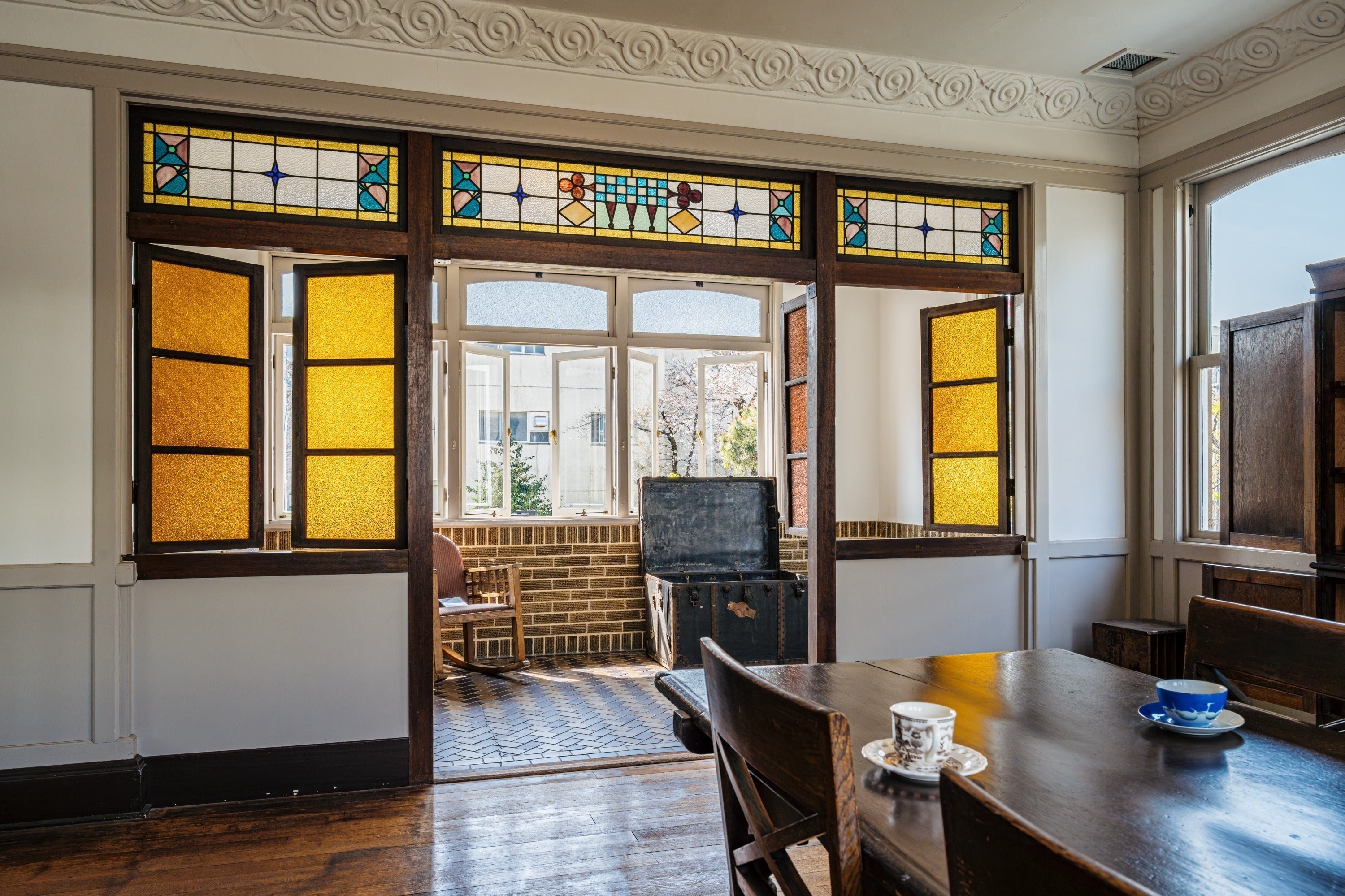 文化のみち橦木館(橦木館外観・ステンドグラス)