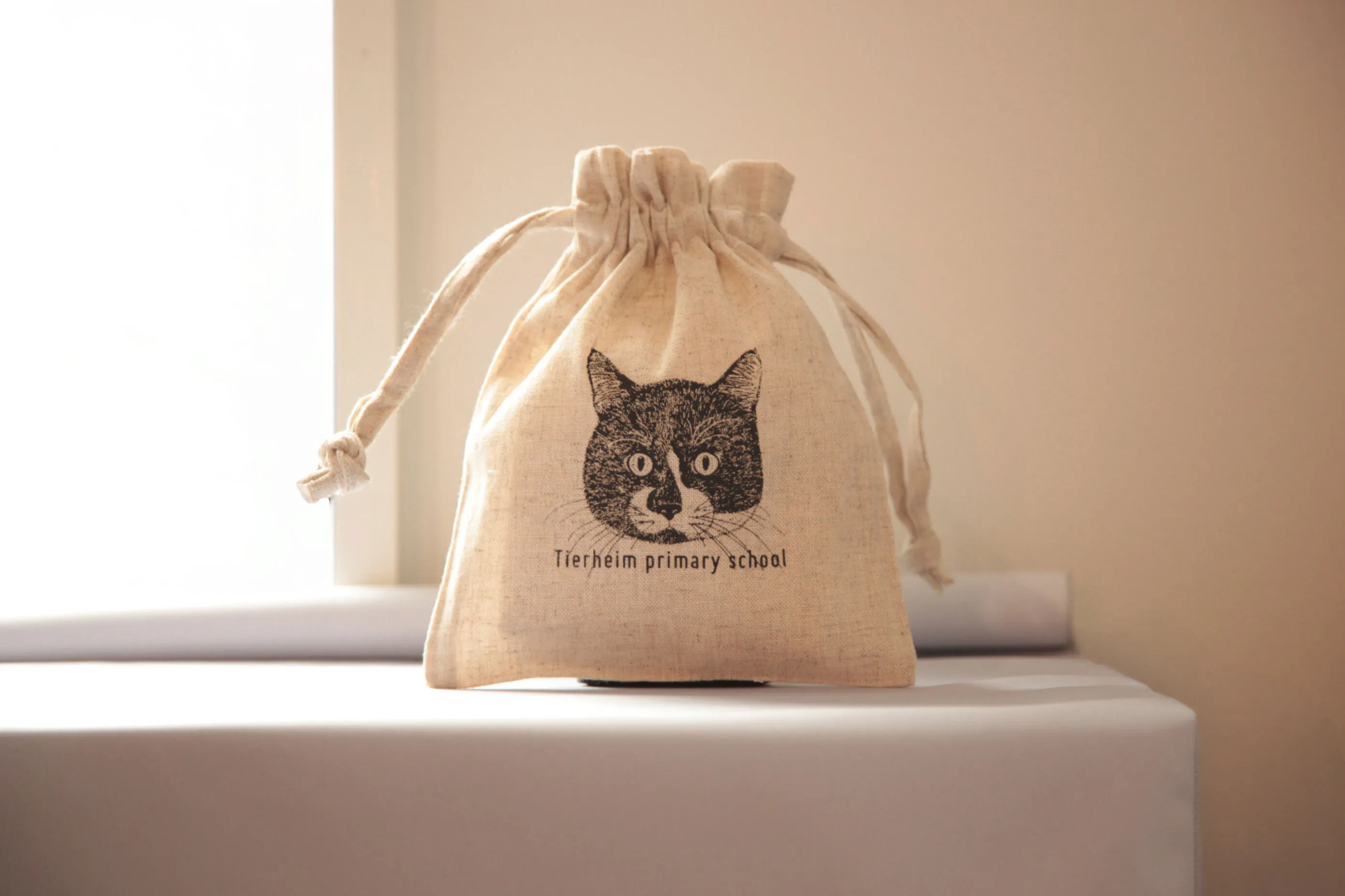 ティアハイム小学校のレジェンドとなったロイ君のオリジナル巾着袋です。かばんの中の整頓やおやつ収納袋など、持ち歩き用にも使いやすいサイズです。
